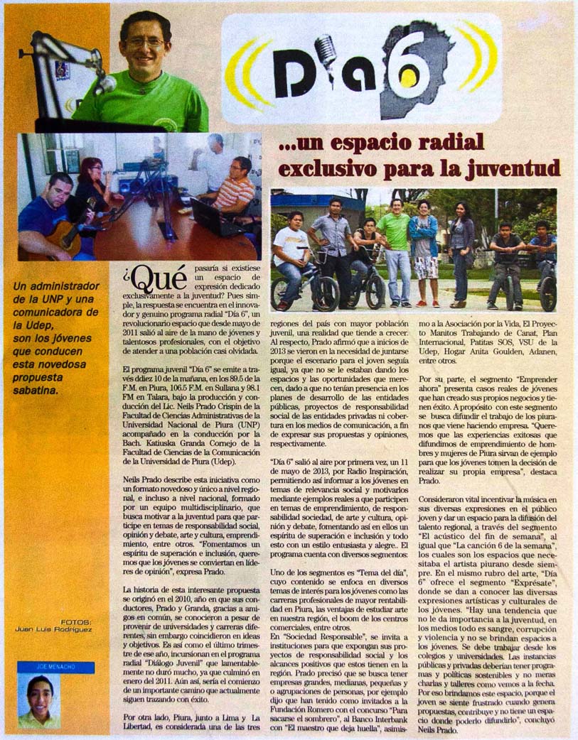 • Día 6… un espacio radial exclusivo para la juventud