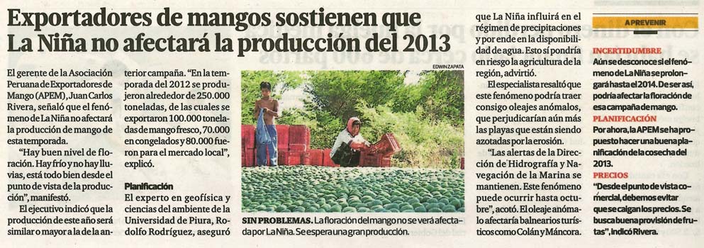 • Exportadores de mangos sostienen que La Niña no afectará la producción del 2013