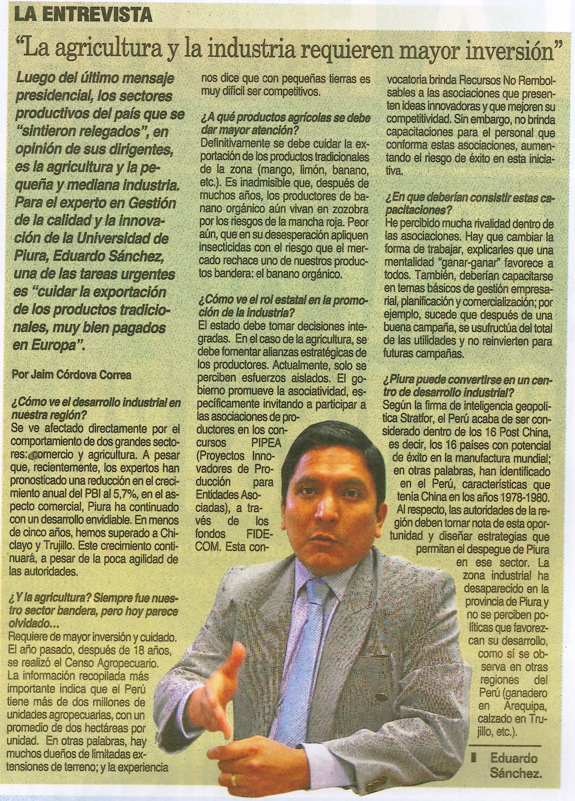 • “La agricultura y la industria requieren mayor inversión”