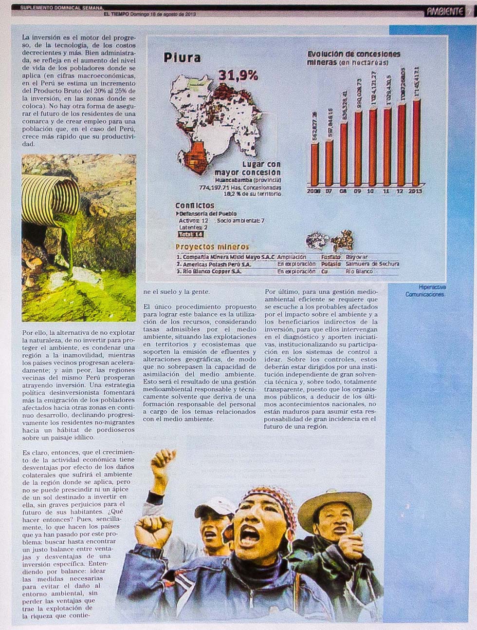 Reflexionando sobre la incidencia en la vida regional del debate privado y público alrededor de la procedencia de la inversión minera en la Sierra de Piura, la primera inferencia que deriva de los argumentos esgrimidos en las virulentas discusiones sobre el tema es que, irrefutablemente, la decisión final afectará a todos los pobladores de la región Piura. Algunos, cambiarán su forma de vida; otros, casi no notarán el cambio en su quehacer diario, pero todos serán perturbados. Por lo tanto, este es un tema en el que todos los piuranos deben opinar y ser escuchados.