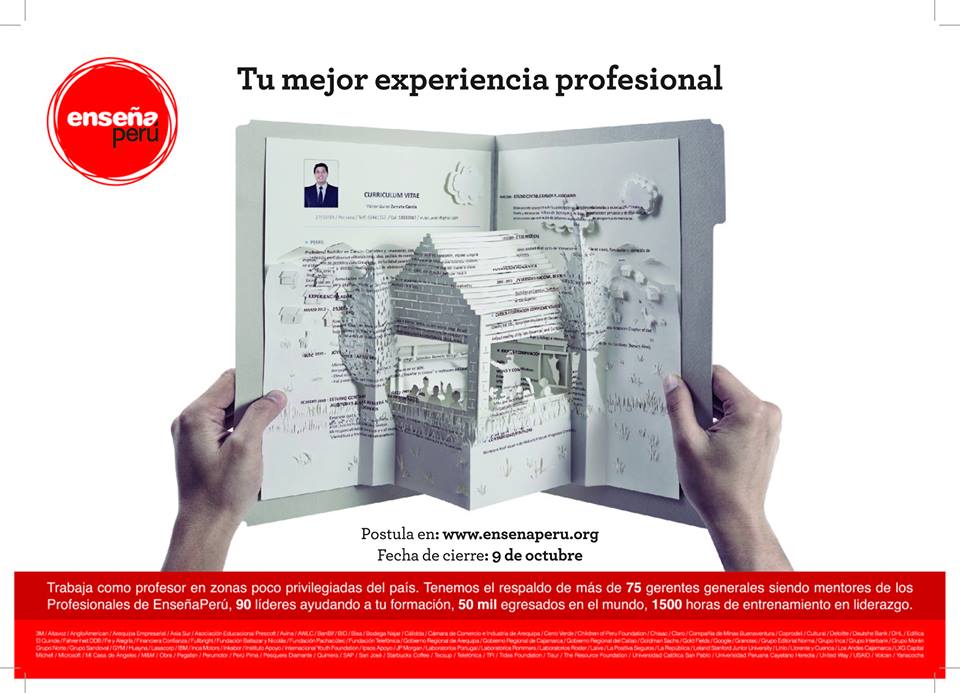 Pueden postular los alumnos que cursen desde el cuarto año de carrera y quienes hayan culminado sus estudios universitarios. Los seleccionados serán capacitados como agentes de cambio. “El asesoramiento tiene un doble impacto en la sociedad: los jóvenes desarrollarán habilidades de liderazgo y el país recibirá un aporte al sistema educativo”, explica Andrea Malapartida, graduada de la UDEP y Profesional de Enseña Perú (PEP).