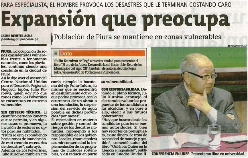 Julio Kuroiwa, asesor del Centro Nacional Unidos para el Desarrollo Regional, advierte a las autoridades sobre las zonas piuranas que se encuentran vulnerables a desastres