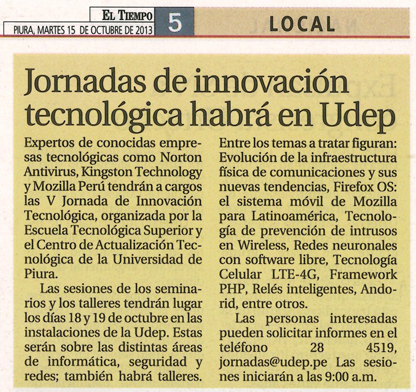 • Jornadas de innovación tecnológica habrán en la UDEP