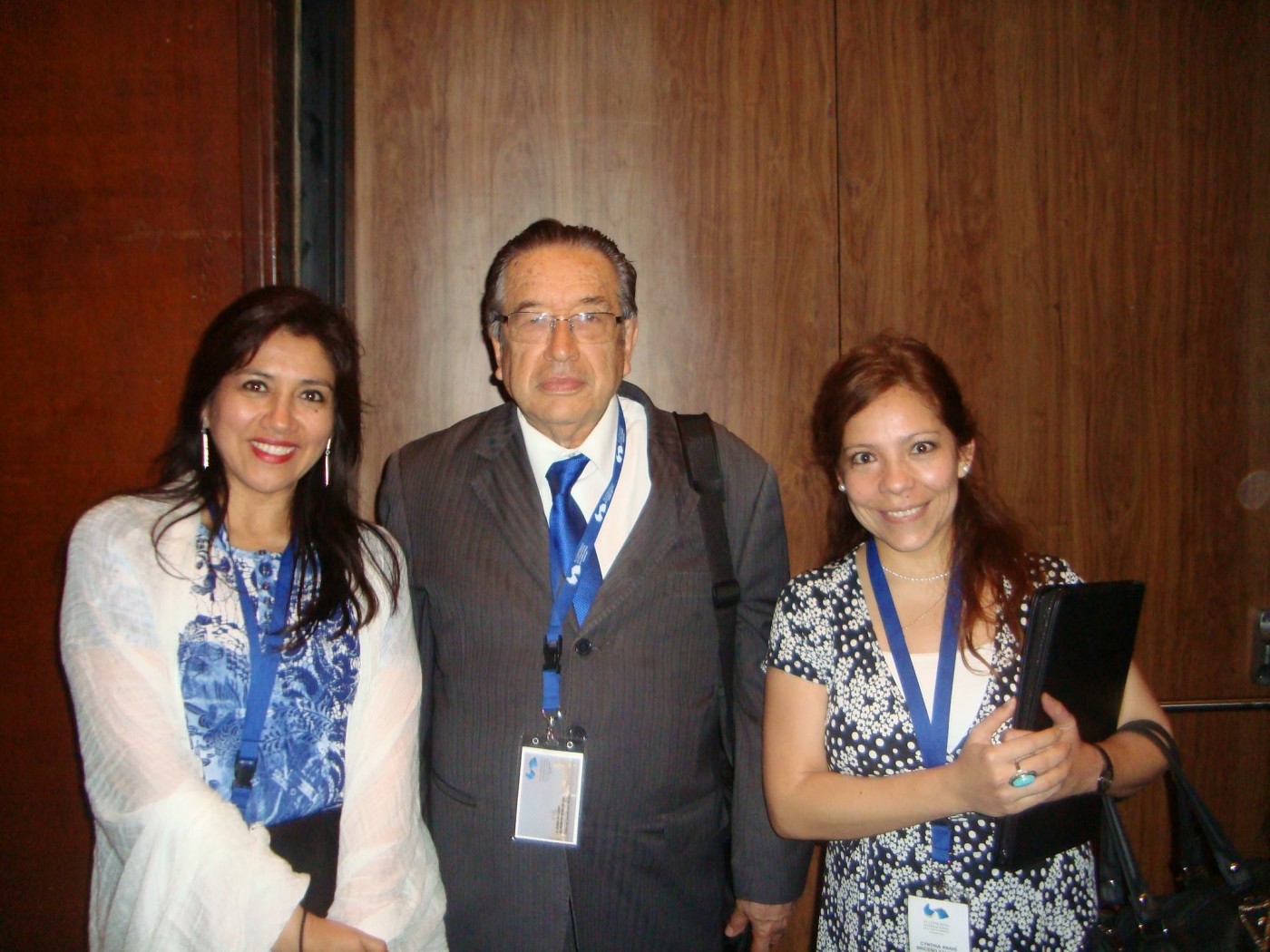 Eliana Gonzales y Cynthia Briceño en compañia de Marcos Martos, presidente de la Academia Peruana de la Lengua.