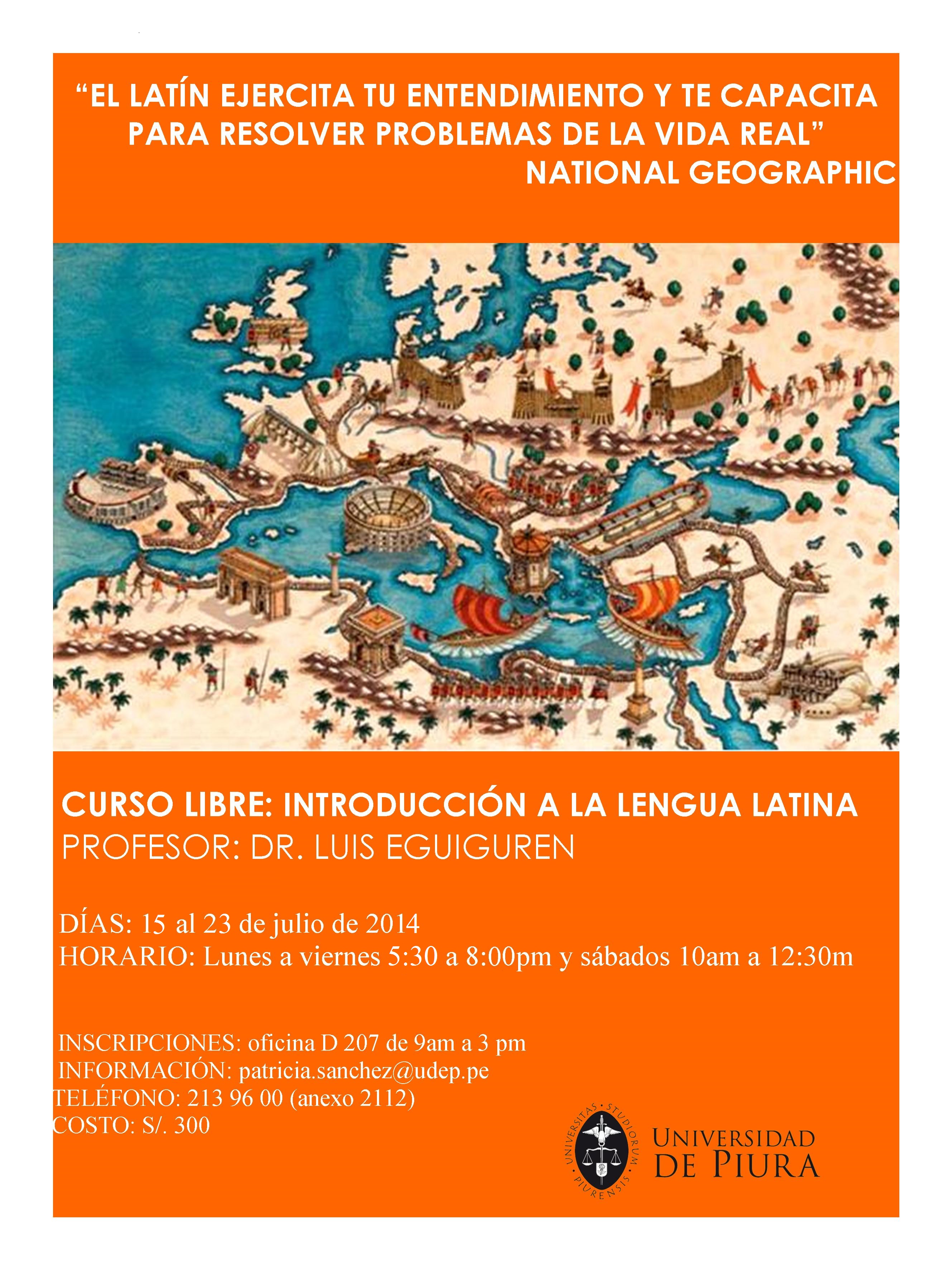 Por Claudia Reto. 08 julio, 2014.Conocer la etimología de las palabras que usamos brinda la capacidad de penetrar en lo que se dice. Y es el latín, y en un nivel secundario el griego, nos otorga esta destreza. Para ayudar a comprender mejor la semántica y el léxico del latín, no solo a partir del valor de uso, sino a través de textos y diálogos, el Dr. Eguiguren dictará el curso libre “Introducción a la lengua latina”.
