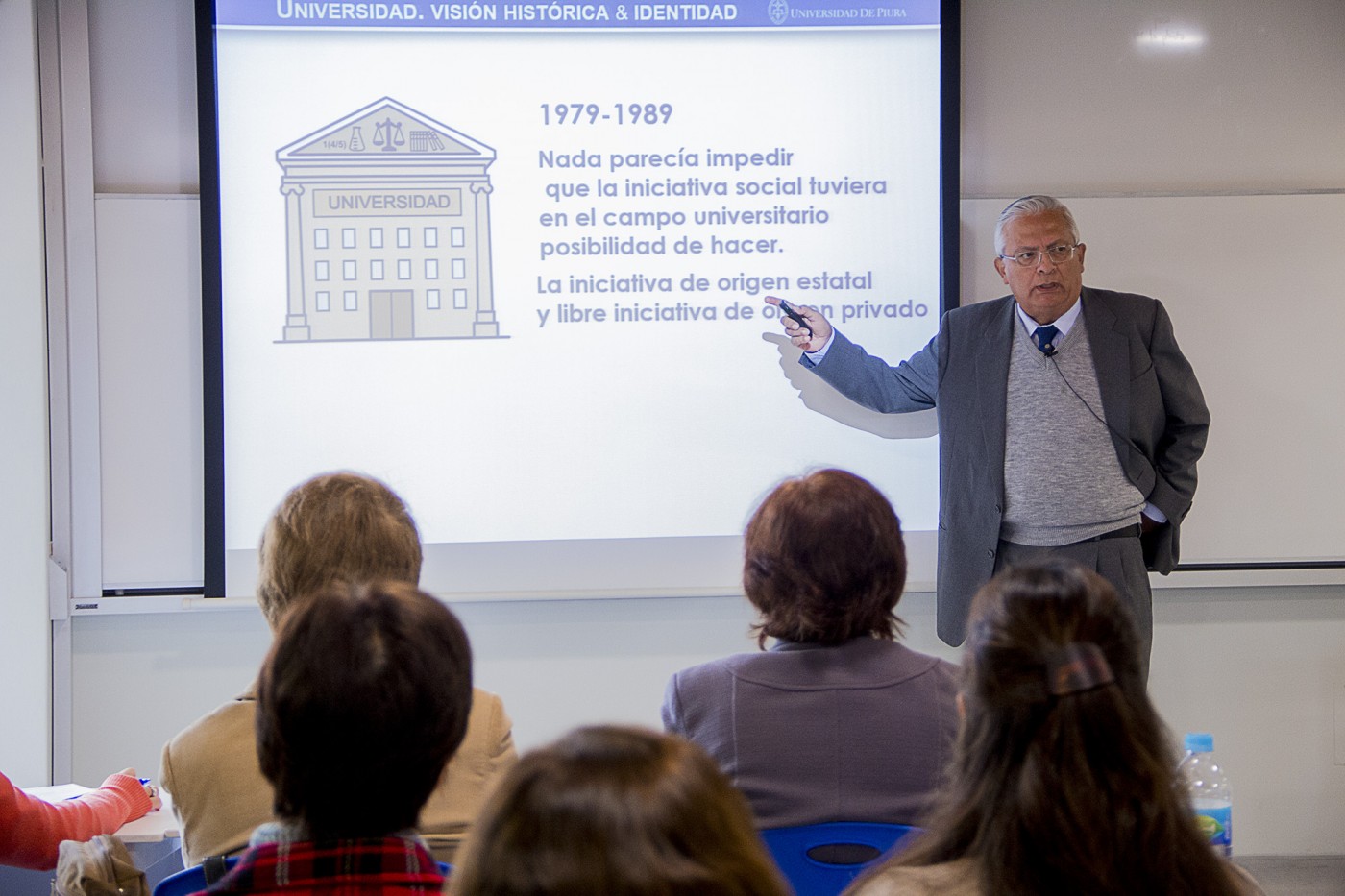 El seminario fue desarrollado en los campus de Piura y Lima en el marco del Programa de Formación Permanente de Profesores que lleva a cabo la Universidad de Piura. El Dr. Víctor Morales Corrales, exrector de esta casa de estudios expuso la visión histórica e identidad de la Universidad como institución, y su autonomía y finalidades. Por su parte, el Dr. Enrique Banús Irusta, director del Instituto de Estudios Europeos y profesor de la Facultad de Humanidades, desarrolló la ponencia “La verdad de la libertad: la Universidad en la visión de Juan Pablo II y Benedicto XVI”.