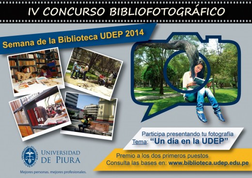 La Biblioteca Central de la Universidad de Piura convoca a los alumnos de ambos campus a participar del IV Concurso Bibliofotográfico. Participa hasta el 5 de noviembre.