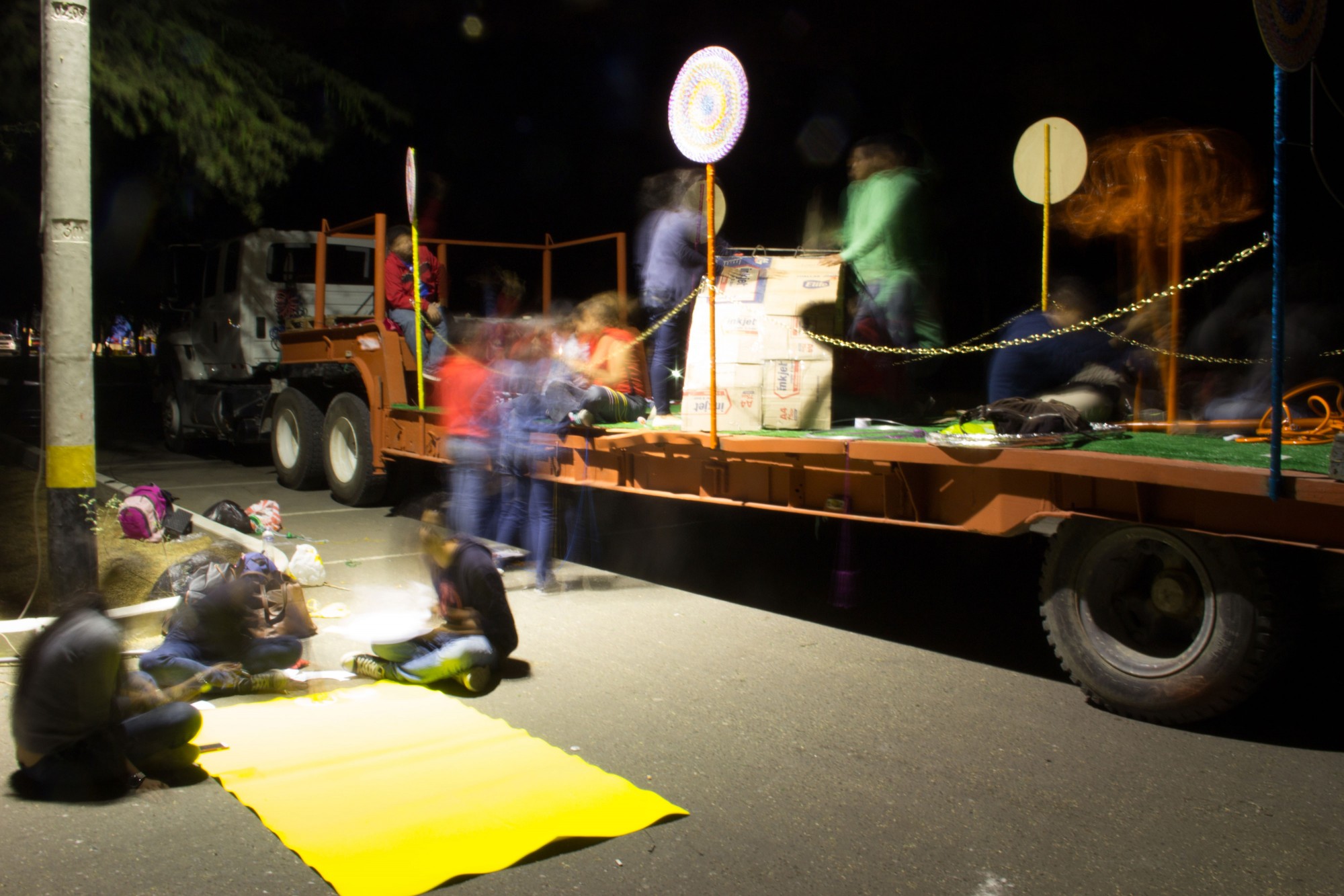 Alumnos y profesores han trabajado juntos toda la noche en el armado de sus carros alegóricos. Esfuerzo, aprendizaje e integración.