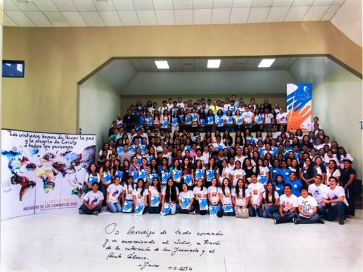 También, Mons. Javier Echevarría, prelado del Opus Dei y Gran Canciller de la Universidad de Piura, envió un mensaje a los cientos de jóvenes que participaron en este encuentro: “Os bendigo de todo corazón y os encomiendo al Señor, a través de la intercesión de san Josemaría y el beato Álvaro” (ver fotografía arriba).