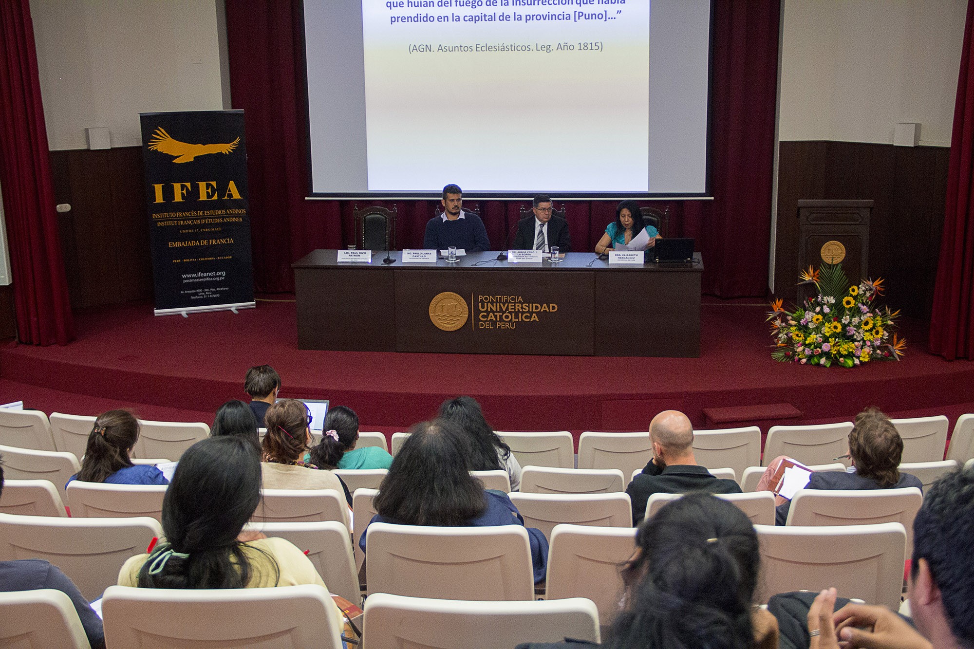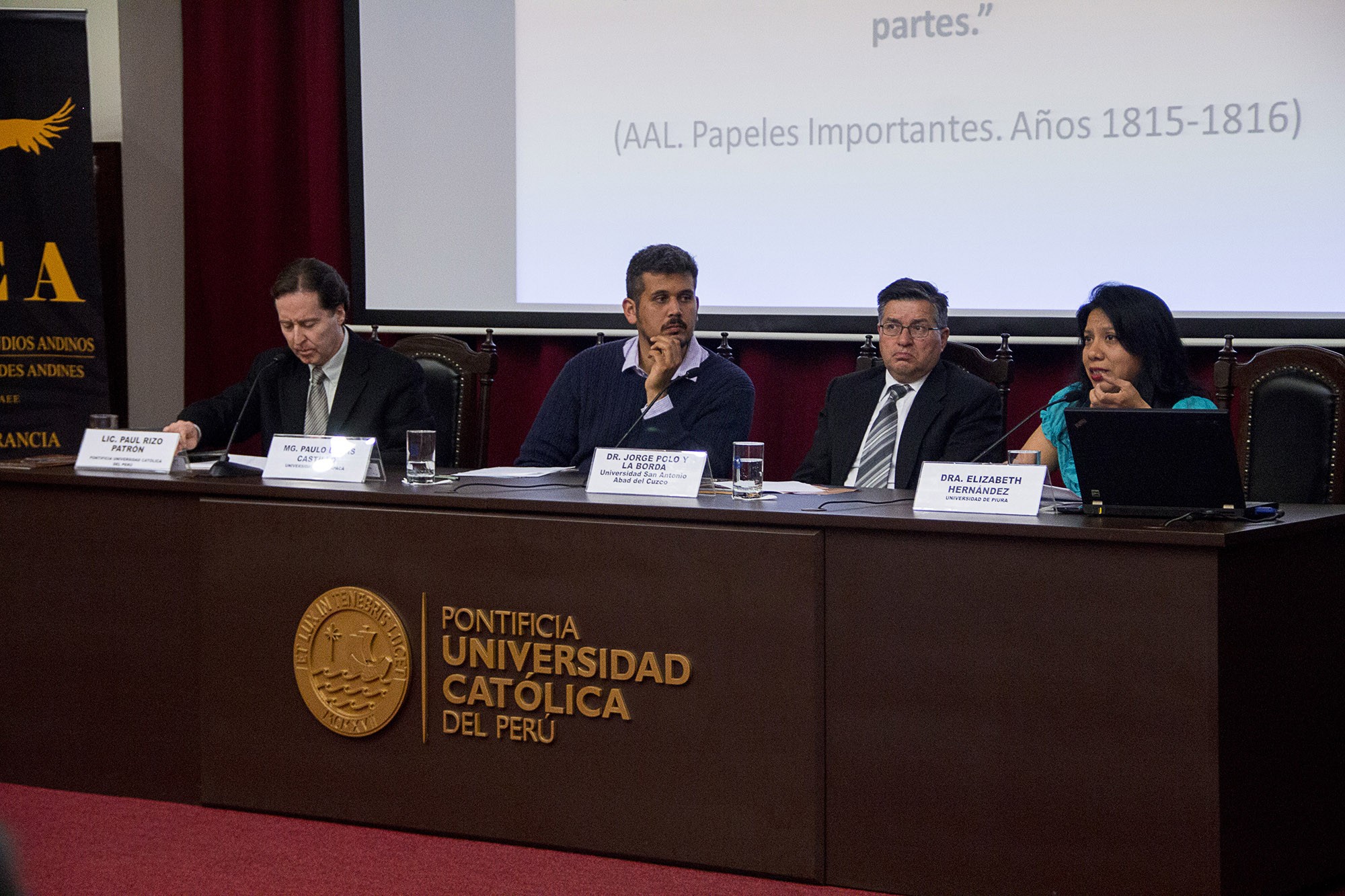La Dra. Elizabeth Hernández junto a Paul Rizo Patrón de la Universidad Católica del Perú y Paulo Lanas Castillo de la Universidad de Tarapacá de Chile, expusieron temas relacionados al impacto en La Junta de Gobierno del Cuzco y el Sur Andino en otros espacios del virreinato peruano.