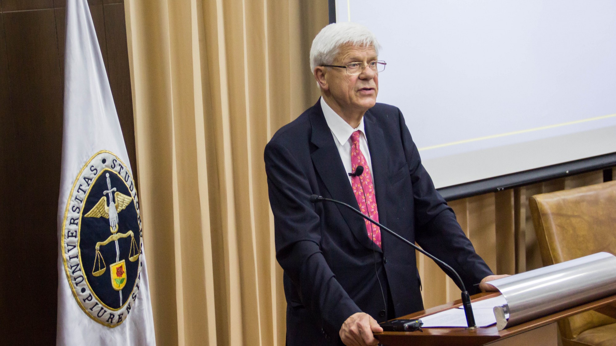 El doctor Christian Starck llegó a Piura para exponer el trabajo “Tratados Internacionales de Derechos Humanos y Derecho nacional”, en el marco de las Cuartas Jornadas de Derechos Humanos: La constitucionalización de los tratados de derechos humanos en el Perú”, dirigidas a magistrados, fiscales, abogados, autoridades, profesores, egresados y alumnos de derecho.