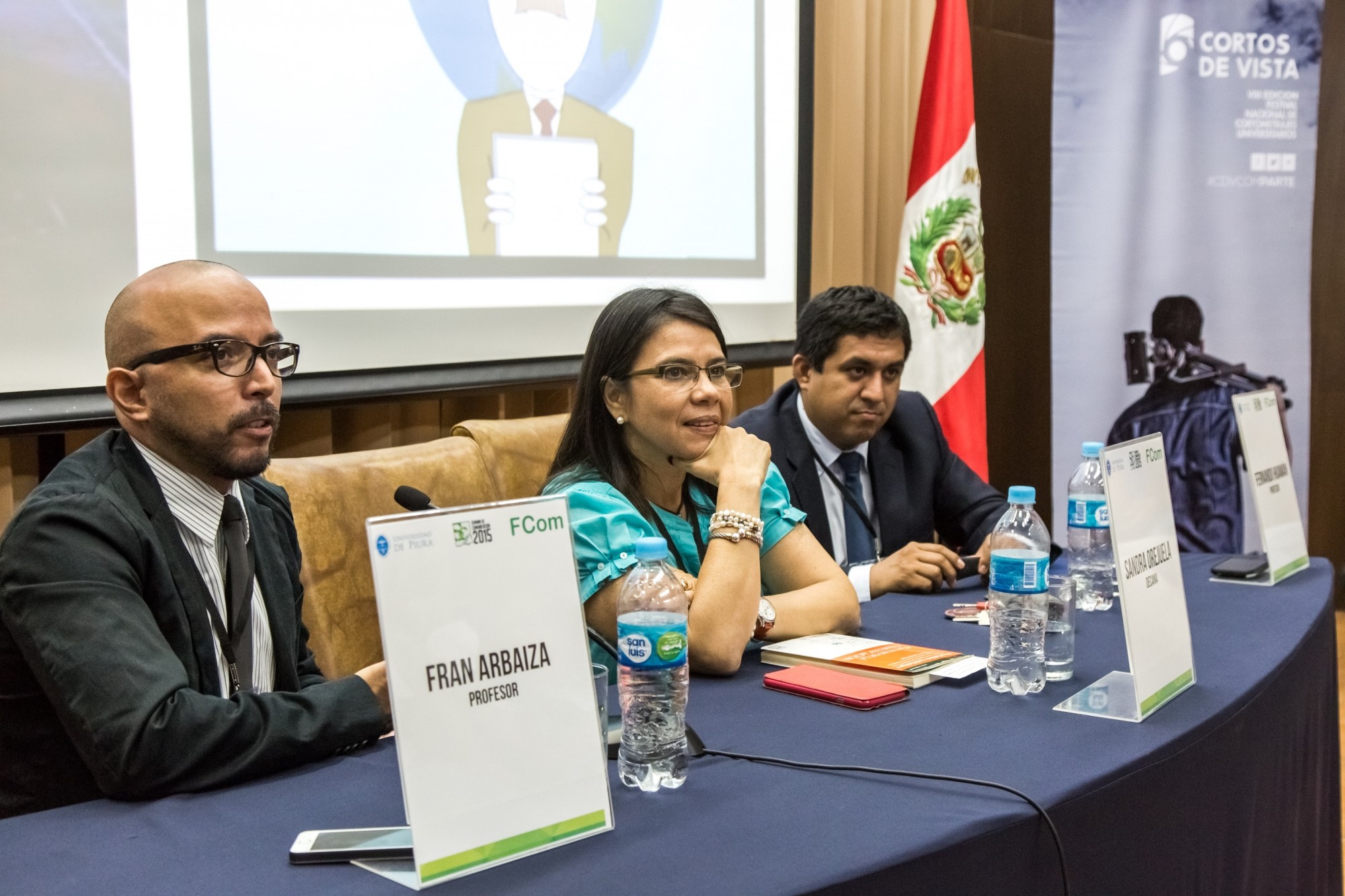 Sandra Orejuela, Fernando Huamán y Francisco Arbaiza, docentes de la UDEP, fueron los panelistas del Foro sobre Tv Basura, una de las actividades que abrió la Semana de Comunicación.