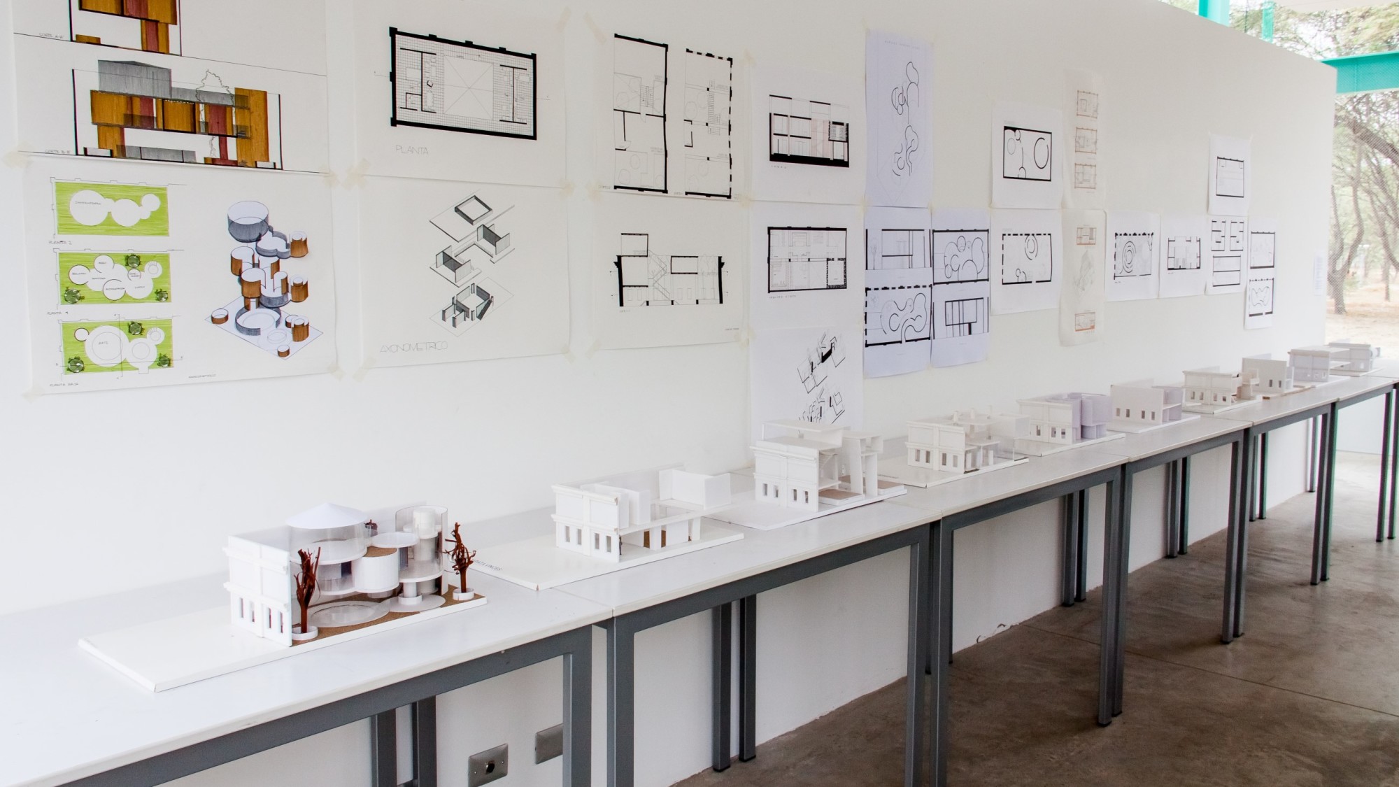 En el ala Este se exponen las primeras maquetas de los alumnos de Proyectos 1, a cargo del profesor Dr. Arq. Jorge Losada.