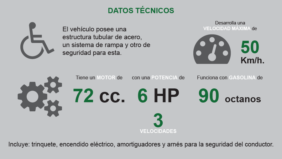 En este contexto, un grupo de alumnos de la Facultad de Ingeniería (del curso de Mecánica Dinámica) ha construido un innovador vehículo motorizado (un trimóvil) que puede ser conducido, con total autonomía, por una persona en silla de ruedas. El vehículo le brinda la oportunidad de trabajar para generar ingresos económicos y reduce los casos de discriminación.