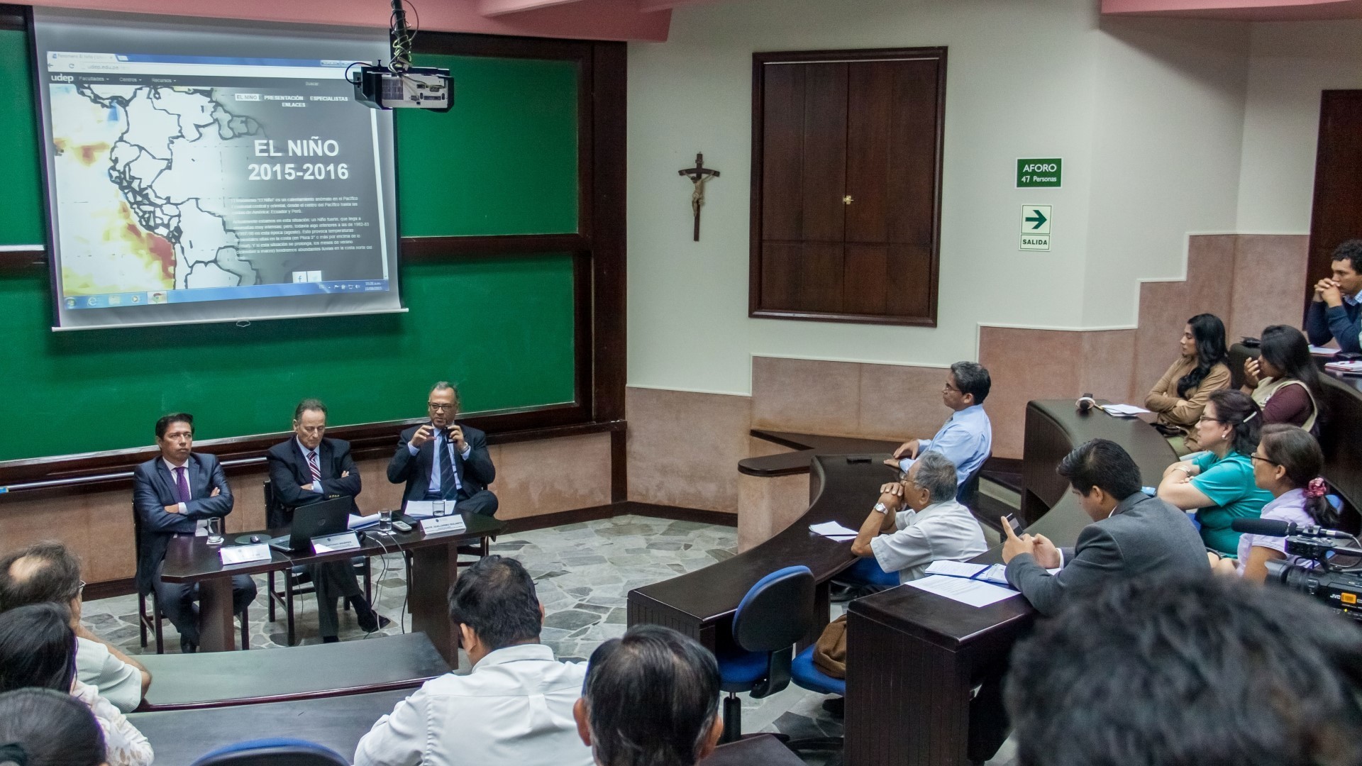 [10 de setiembre] Los profesores Antonio Mabres, Jorge Reyes y Guillermo Dulanto presentaron en un conversatorio la nueva web para informar sobre el fenómeno El Niño 2015-2016. En el sitio se presentan los principales efectos del fenómeno, artículos de opinión y recomendaciones de prevención.