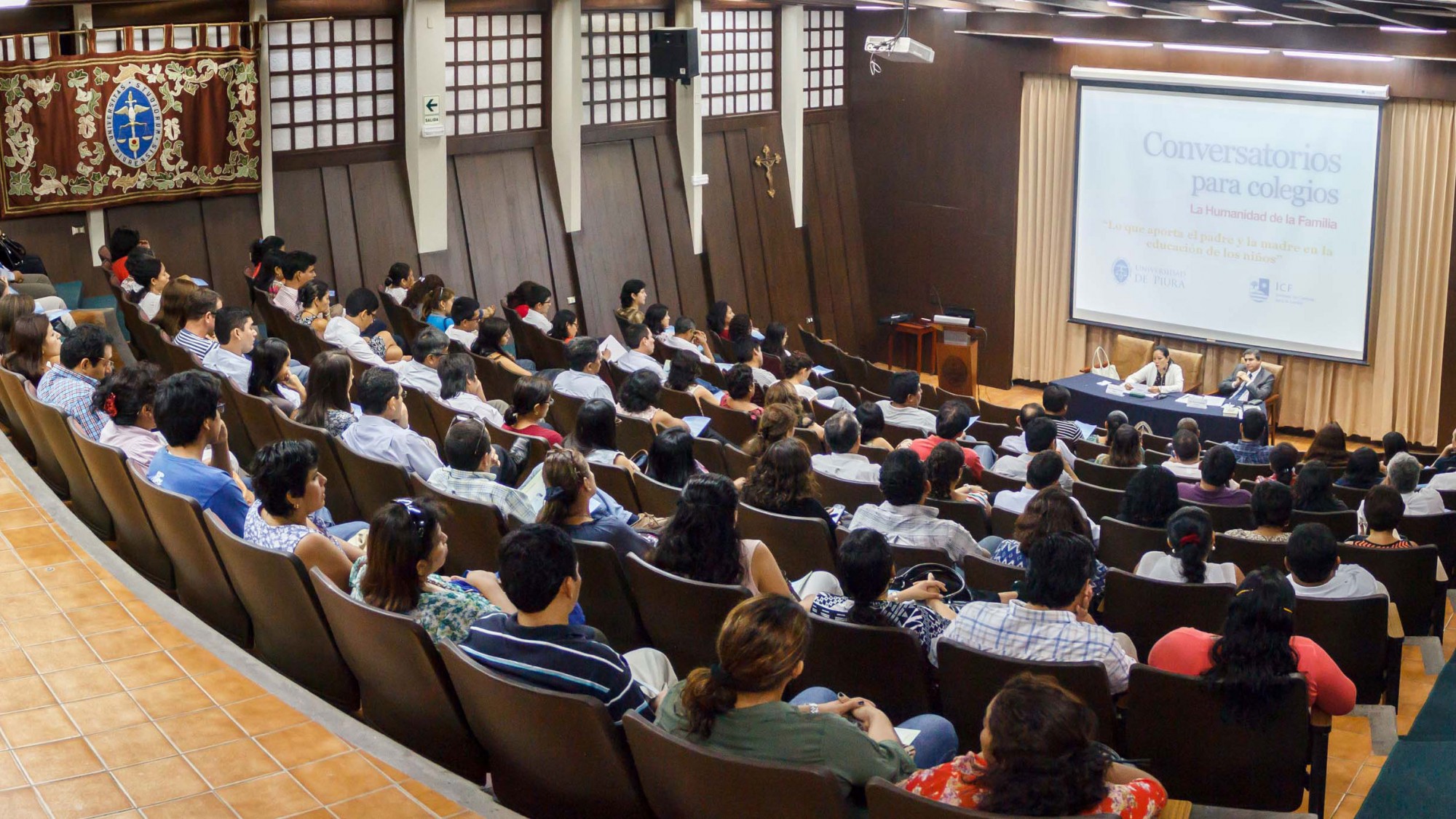 [21 de mayo] Los doctores Paúl Corcuera y Mariela García compartieron su experiencia con los padres y madres que asistieron a la jornada “Lo que aporta el padre y la madre en la educación de los niños” del ICF. Los esposos coincidieron en señalar que el padre y la madre cumplen una labor complementaria en la educación de los hijos. Además, deben asumir que cada hijo es una persona única y evitar competir con los otros padres por sus logros, habilidades y capacidades.