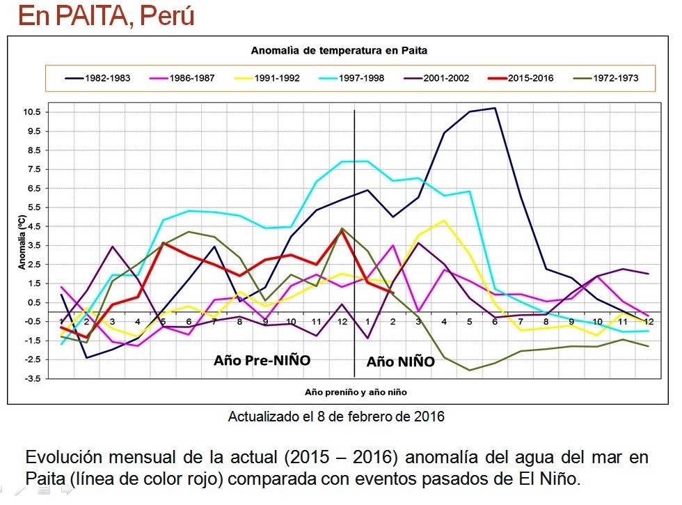 El doctor Jorge Reyes, director del Instituto de Hidráulica, señala que las temperaturas en el mar de Paita, desde noviembre de 2015 hasta febrero 2016, son similares a las habidas en 1972-1973.