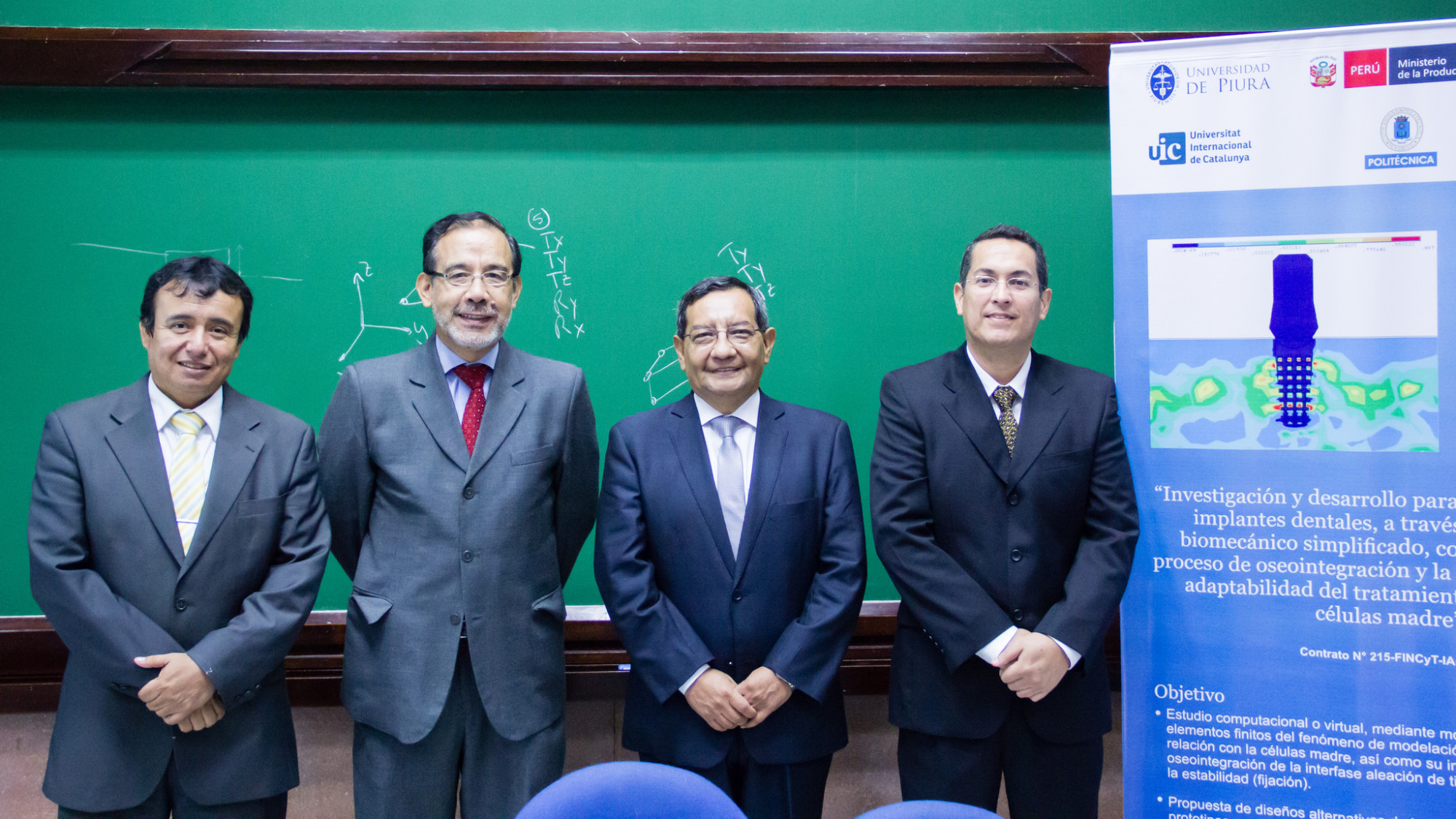 La Facultad de Ingeniería y el Área Departamental de Ciencias Biomédicas de la Universidad de Piura organizaron la presentación de resultados del proyecto “Investigación y desarrollo para una propuesta de implantes dentales, a través de un diseño biomecánico simplificado, con mejoras en el proceso de oseointegración y la investigación de la adaptabilidad del tratamiento con el uso de células madre”, gracias al Proyecto 215-Fincyt-IA-2013 financiado por Innóvate, organismo del Ministerio de la Producción de Perú.