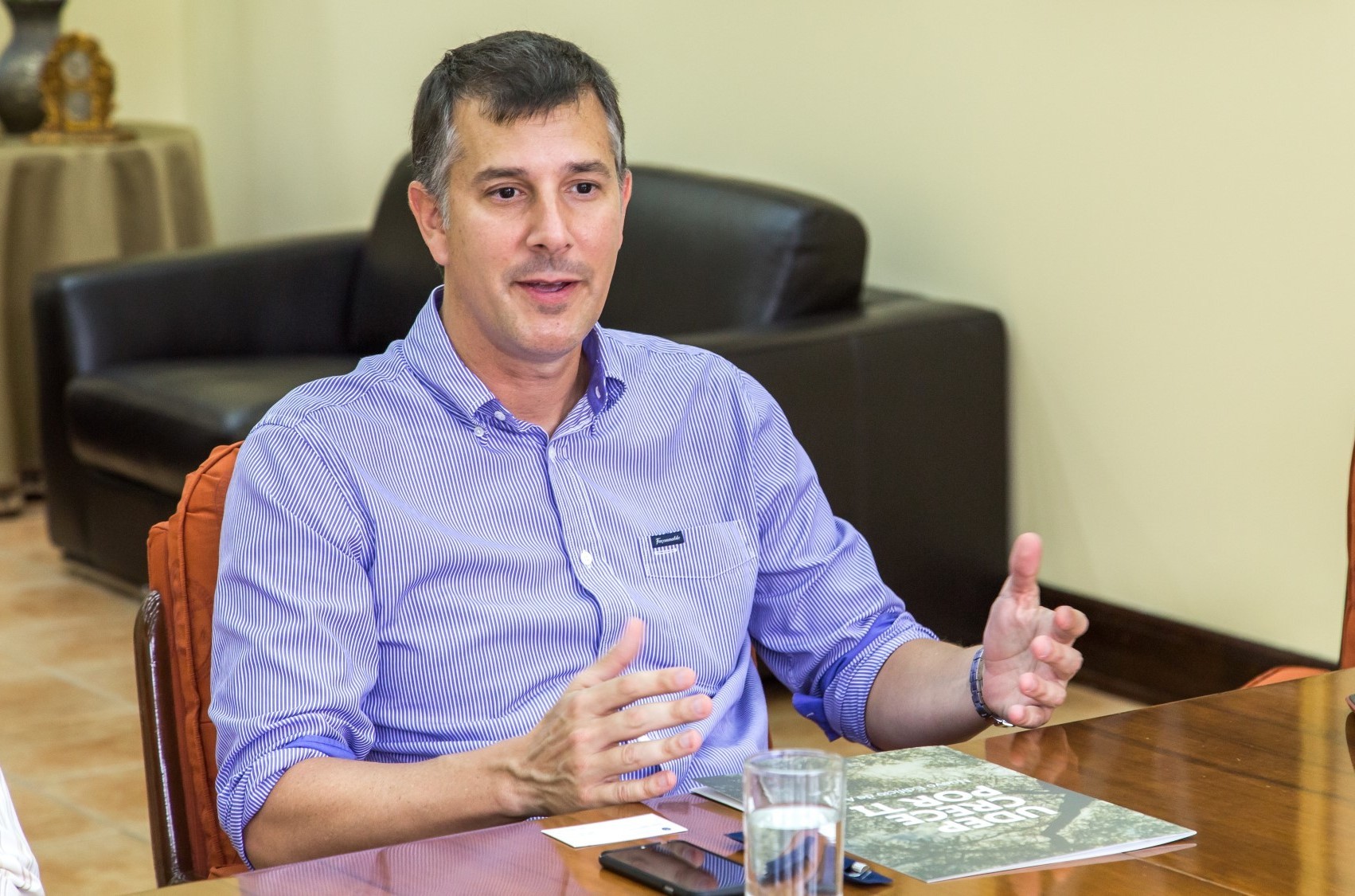 Antes de recorrer el nuevo edificio, Miguel Ucelli fue recibido, en la Sala de Consejo Superior, por una delegación de la UDEP integrada por la Vicerrectora Académica, Dra. Mariela García; la Mgtr. Beatriz Vegas, Administradora General; la Dra. María Pía Chirinos, directora de Relaciones Institucionales y Proyectos Estratégicos; Mgtr. Eric Mayorga, Gerente Comercial; y la Dra. Susana Vegas, directora de Relaciones Internacionales.
