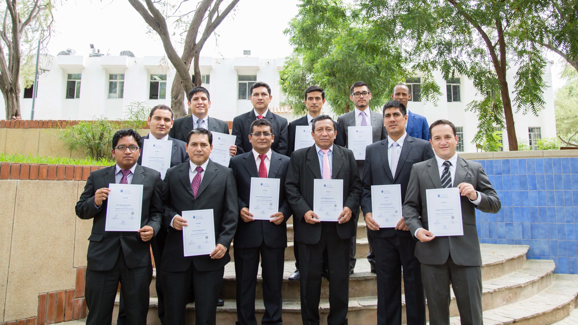 Veintitrés alumnos, entre nacionales y extranjeros, recibieron los diplomas de manos del Dr. Ing. Jorge Reyes, director de la Maestría en Ingeniería Civil con mención en Recursos Hídricos, y del Mgtr. Jorge Machacuay, vicedecano de Posgrados y Extensión. Este diplomado constituye el primer nivel de certificación de la maestría.