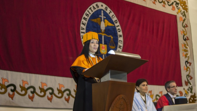 Nancy del Águila tomó la palabra al iniciar la ceremonia para dar ánimos a los recién egresados en su vida profesional. “Ahora, enfrentarán una realidad en la que muchas veces no es fácil insertarse. Deben saber que todas las organizaciones de nuestro siglo necesitan más que nunca contar con personal que posea profunda formación ética”.