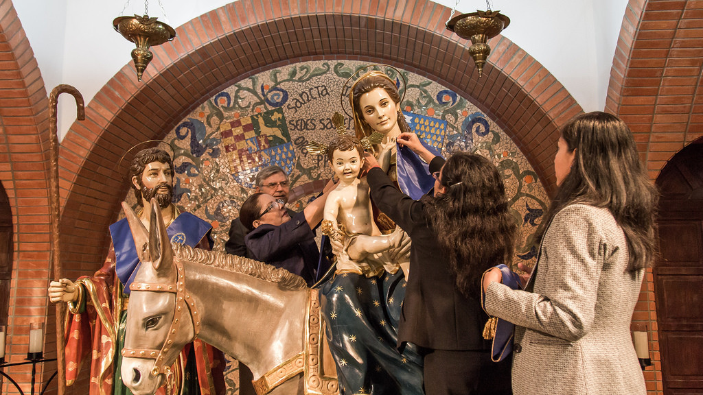 Insignias para la Sagrada FamiliaReviviendo una antigua tradición, en especial atención a los 30 años de Educación, los profesores Camilo García, Pablo Pérez, Emma Carreño, Gabriela Alcalá y Carmen Landívar impusieron las insignias de la Facultad a las imágenes de María, José y Jesús.