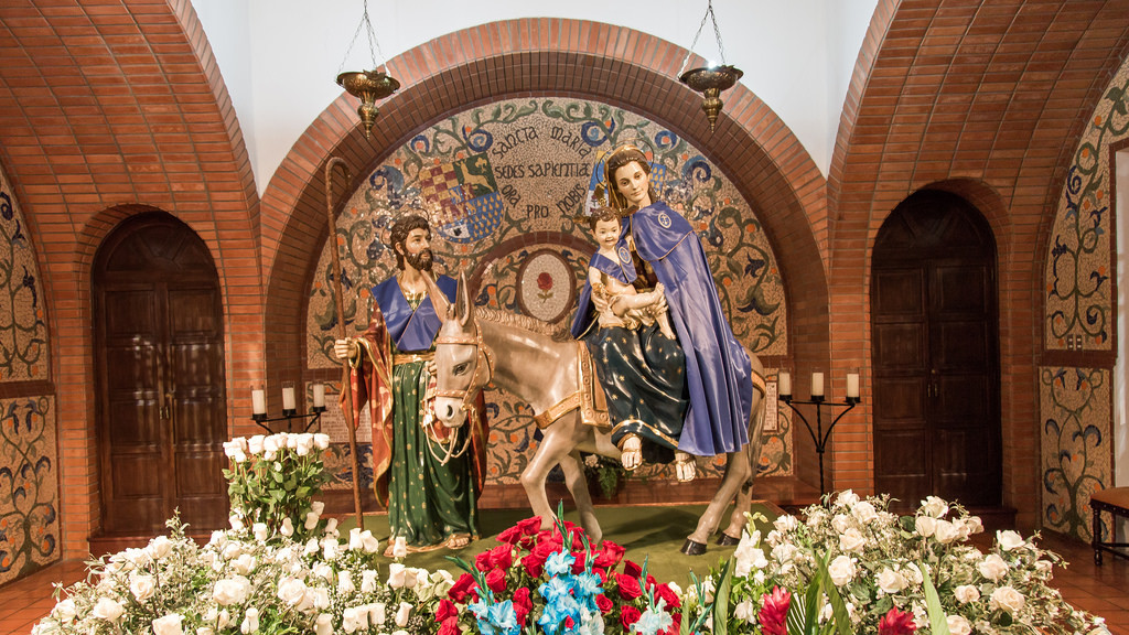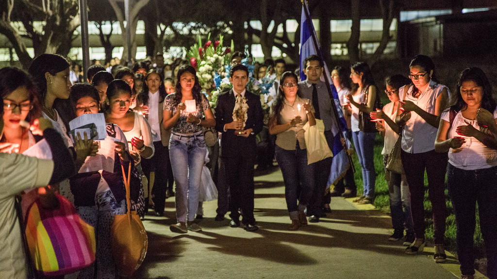 Los estudiantes de primer año de la carrera de Educación de la UDEP formaron un túnel luminoso, con velas, a través de la cual comenzó la marcha hacia la Ermita de la Sagrada Familia. En el camino, entre oraciones, se entonaban cánticos a la Virgen como: hoy te quiero cantar, María, Mírame; Junto a ti María… Las guitarras de las religiosas (alumnas de la Facultad) demostraban la alegría y el amor a la Madre María.