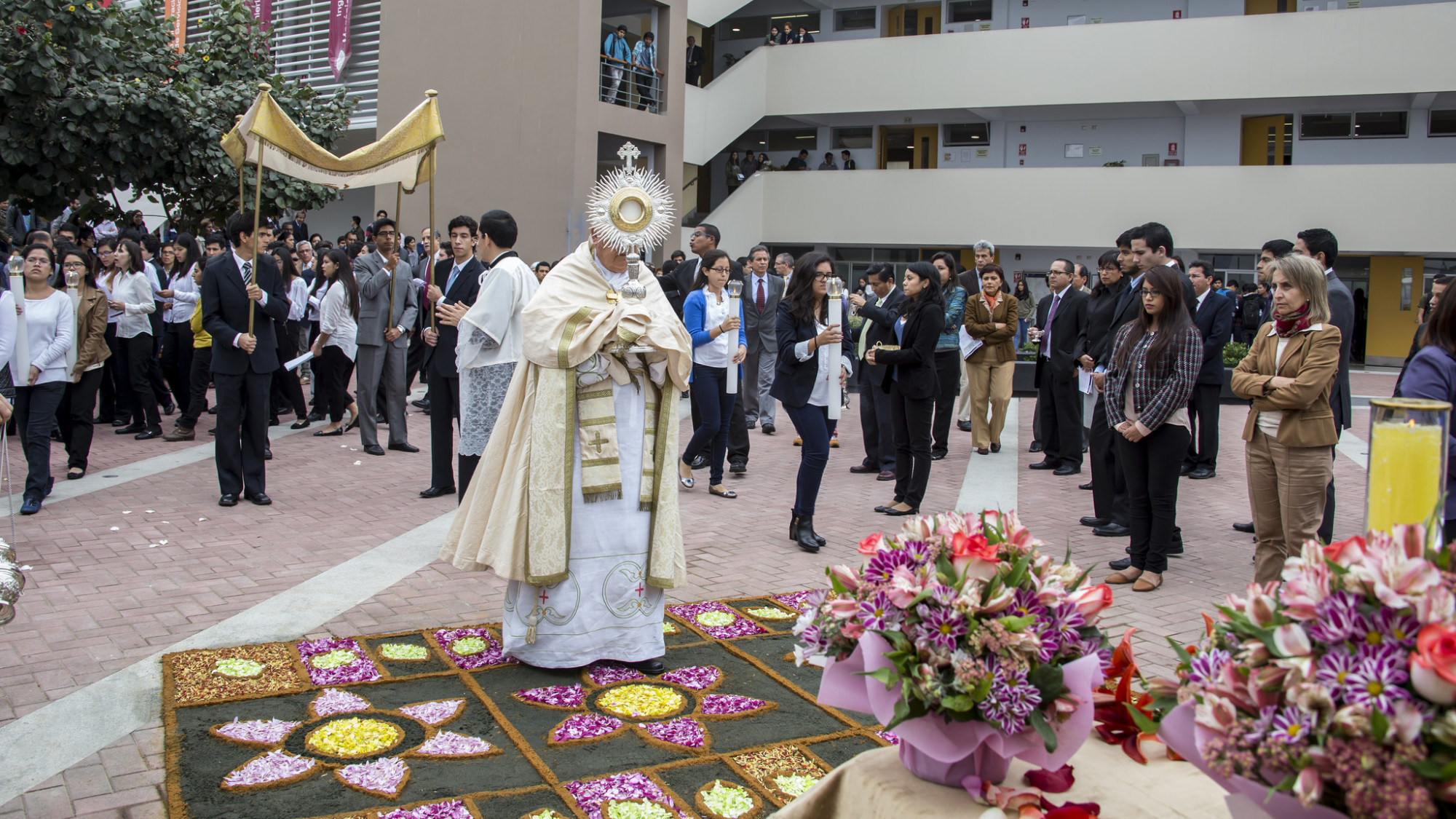 Capellanía y Vida Universitaria organizaron la primera procesión del Corpus Christi donde participaron los profesores, alumnos y personal administrativo de Campus Lima el 1 de junio.