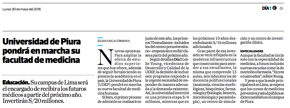 Nota en Día 1 sobre la nueva facultad de Medicina