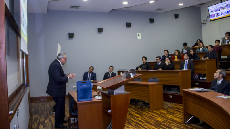 Humberto Arnillas, Gerente de Marketing y Comunicaciones de la Sociedad Nacional de Minería, Petróleo y Energía, habló con los alumnos de la Facultad de Derecho sobre la minería y el desarrollo sostenible.