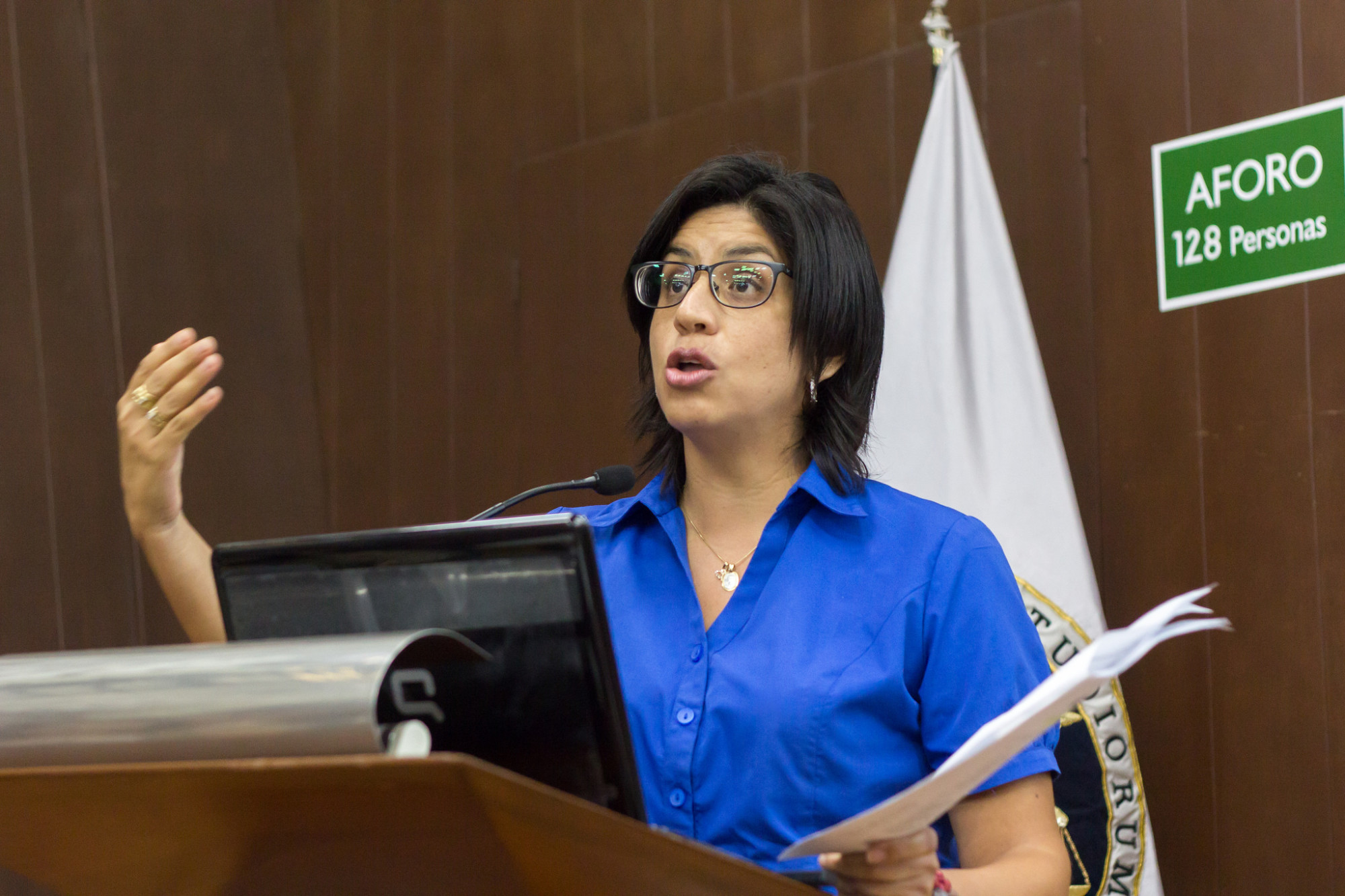 La doctora Jaqueline Sarmiento presentó el panorama histórico de cómo la violencia contra la mujer llegó a ser un asunto público, comenzando con las nociones básicas como las definiciones de derechos, noción de titularidad, características de los derechos humanos, las tres generaciones de derechos (los basados en la libertad, los basados en el valor de la verdad y los que se basan en el valor de la solidaridad) etc.