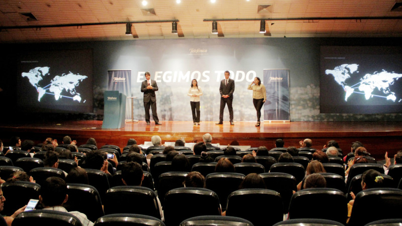 Rocío Araujo, Marifé Carbajal (Ingeniería Industrial y de Sistemas), Óscar Cheng y Santiago Ruiz (Ingeniería Mecánico –Eléctrica) expusieron su proyecto, el miércoles 11 de enero, en la final nacional del Hult Prize, realizada en el auditorio de Telefónica de Lima.