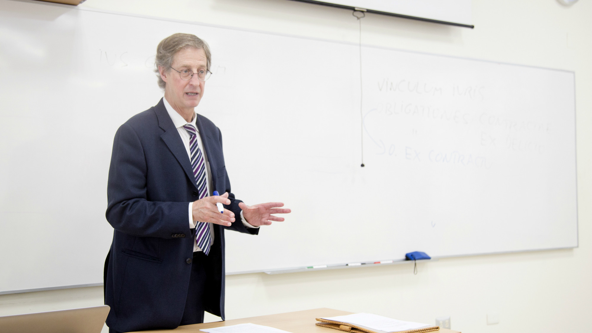 Primero, dirigió dos sesiones sobre el origen de las obligaciones contractuales y, en concreto, el contrato de compraventa desde el punto de vista del Derecho Romano, para los alumnos de segundo año. Además, desarrolló casos prácticos recogidos en el Digesto de Justiniano.