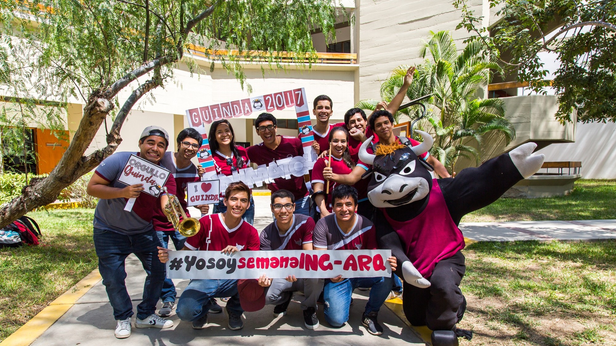 Con mucho entusiasmo y emoción, los alumnos de ‘Sentimiento guinda’ se reunieron frente al Edificio 80 y en las instalaciones del Edificio E de Campus Piura, con el objetivo de animar y contagiar a otras facultades del espíritu guinda e invitarlos a participar en la Semana de Ingeniería y Arquitectura.