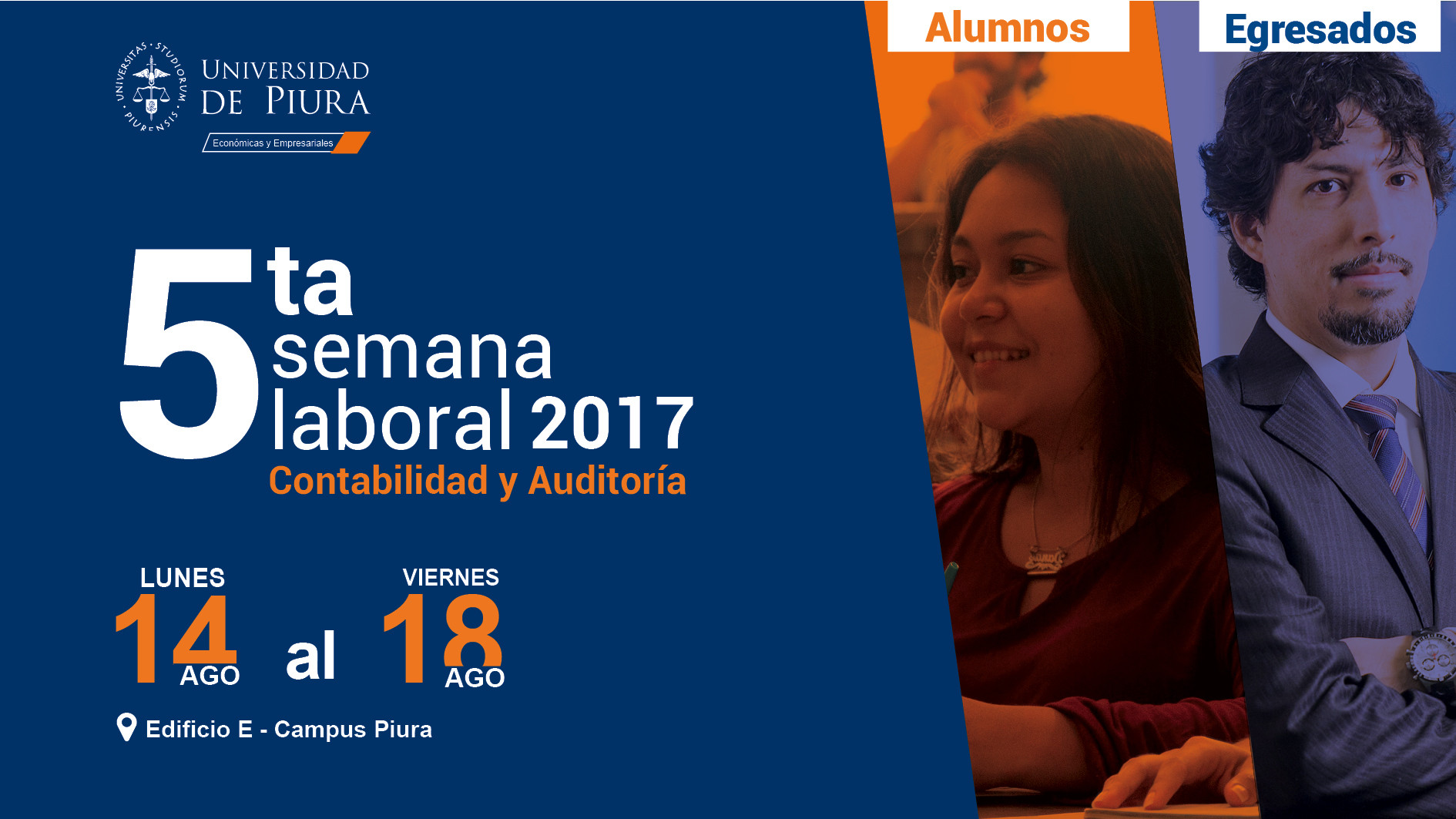 Con el objetivo de promover la empleabilidad y desarrollo profesional de sus alumnos y egresados, el programa académico de Contabilidad y Auditoría de la Facultad de Ciencias Económicas y Empresariales de la Universidad de Piura llevará a cabo la Semana Laboral 2017. El evento se realizará del 14 al 18 de agosto, en Campus Piura.