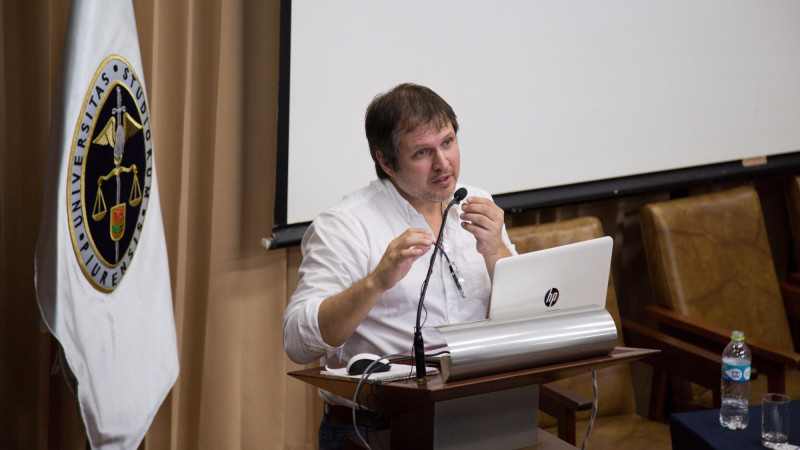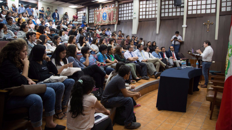 En un auditorio repleto de estudiantes y profesores del programa académico de Arquitectura de la Universidad de Piura expuso algunas de sus obras y su aproximación conceptual al proyecto de arquitectura. Se refirió a la importancia de los materiales y de los sistemas constructivos como fuente para la expresión estética de sus edificios. Asimismo, señaló la necesidad de “entender los orígenes, los lugares y las capas que estos tienen, que no solo son históricas o socioeconómicas sino también geofísicas”.