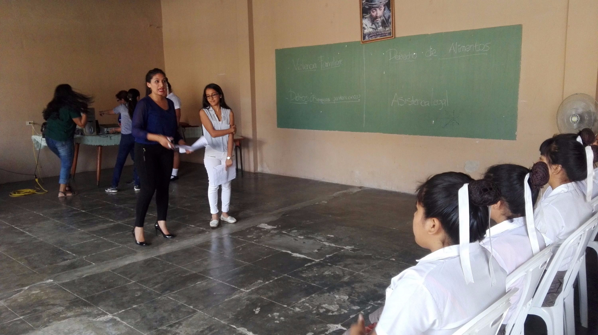 En la Institución Educativa Micaela Bastidas, del asentamiento 26 de octubre, se orientó en temas legales a los alumnos de tercer año. Asuntos como pandillaje, omisión a la asistencia familiar, robo, fueron los escogidos al hablar de Derecho Penal. Por otro lado, temas de proceso de alimentos, filiación, ocuparon la agenda de Derecho Civil.