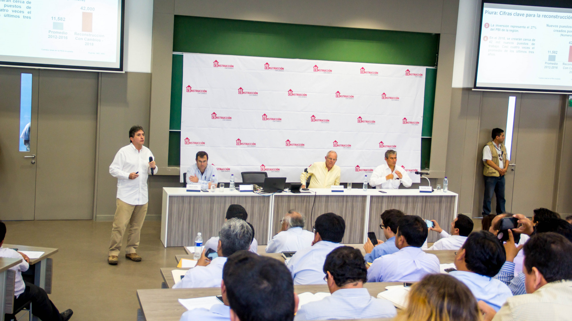 Durante su presentación oficial, Pablo de la Flor, director ejecutivo de la Autoridad para la Reconstrucción con Cambios (ARCC) indicó que se eligió esta región para dar a conocer el Plan Integral, porque “Piura fue el epicentro de la destrucción y Piura será, a partir de este plan, el epicentro del renacimiento. Aquí comienzan a cambiar las cosas”.