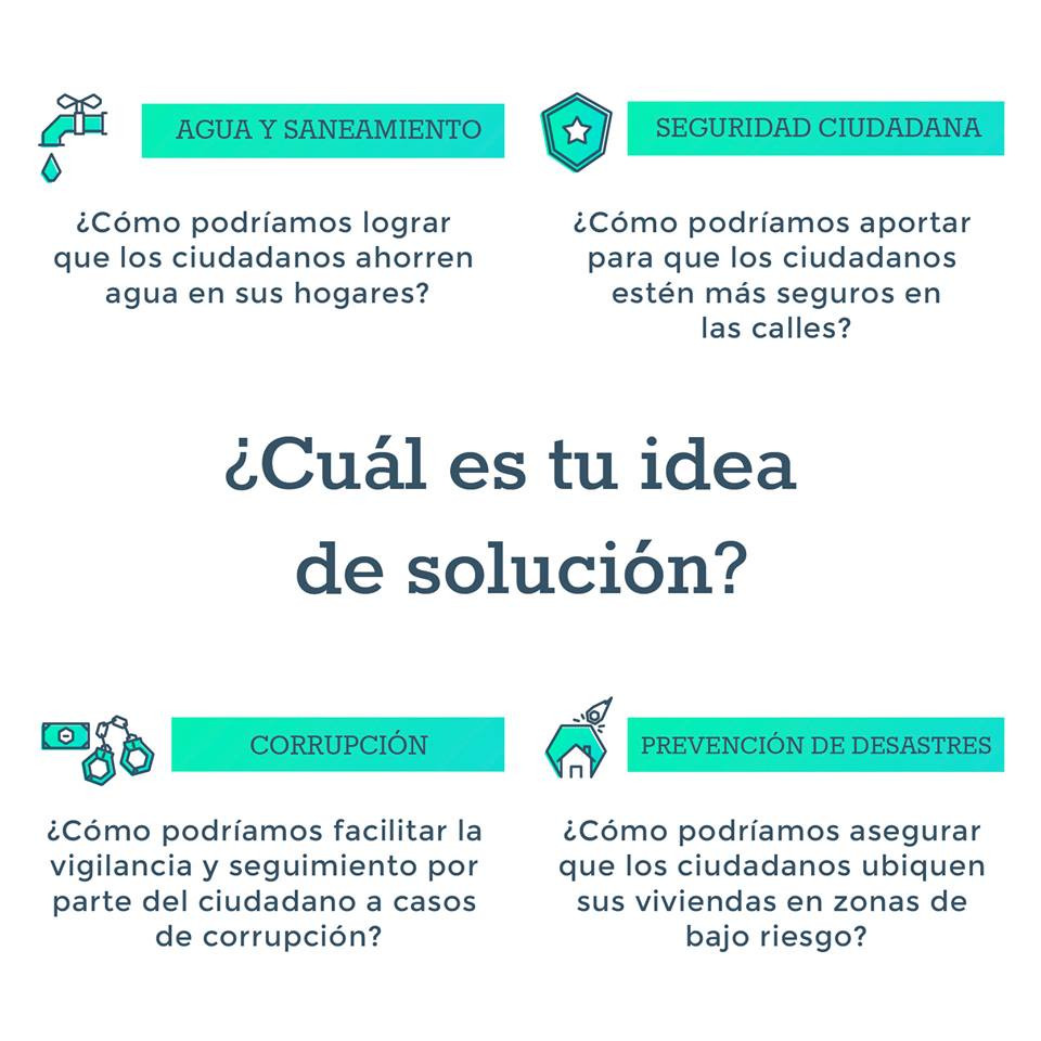La participación de los ciudadanos consiste en diseñar soluciones digitales a problemas de corrupción, agua y saneamiento, seguridad ciudadana y desastres naturales.