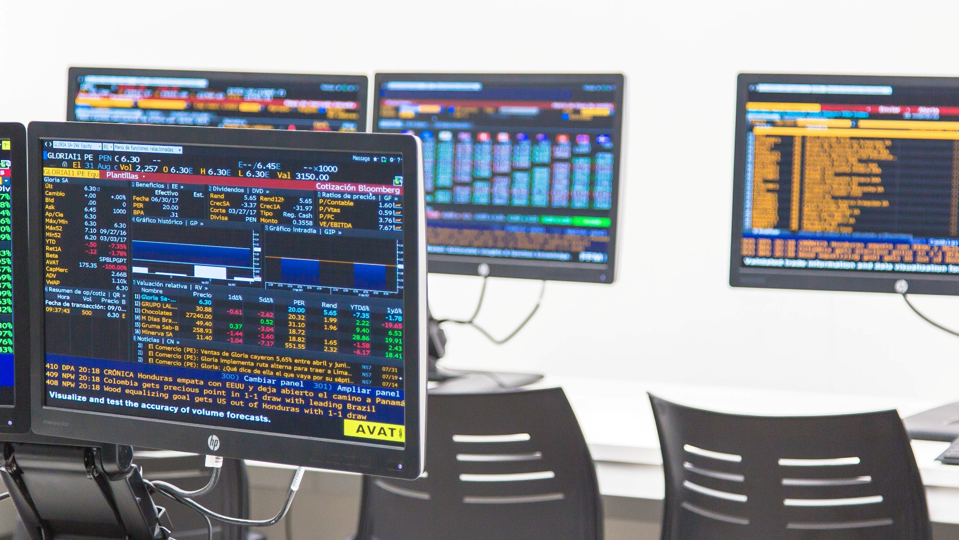 Informó, además, que el Laboratorio Bursátil de la Universidad cuenta con “Economática, que es una base de datos que permite acceder a información actualizada de los mercados financieros de América Latina; Bloomberg, que además de presentar información en tiempo real de todos los mercados financieros del mundo permite elaborar estrategias de inversión”. Estas bases de datos solo estaban disponibles en algunas universidades de Lima, como en la Universidad de Piura, Campus Lima, que cuenta con Bloomberg desde hace algunos meses.