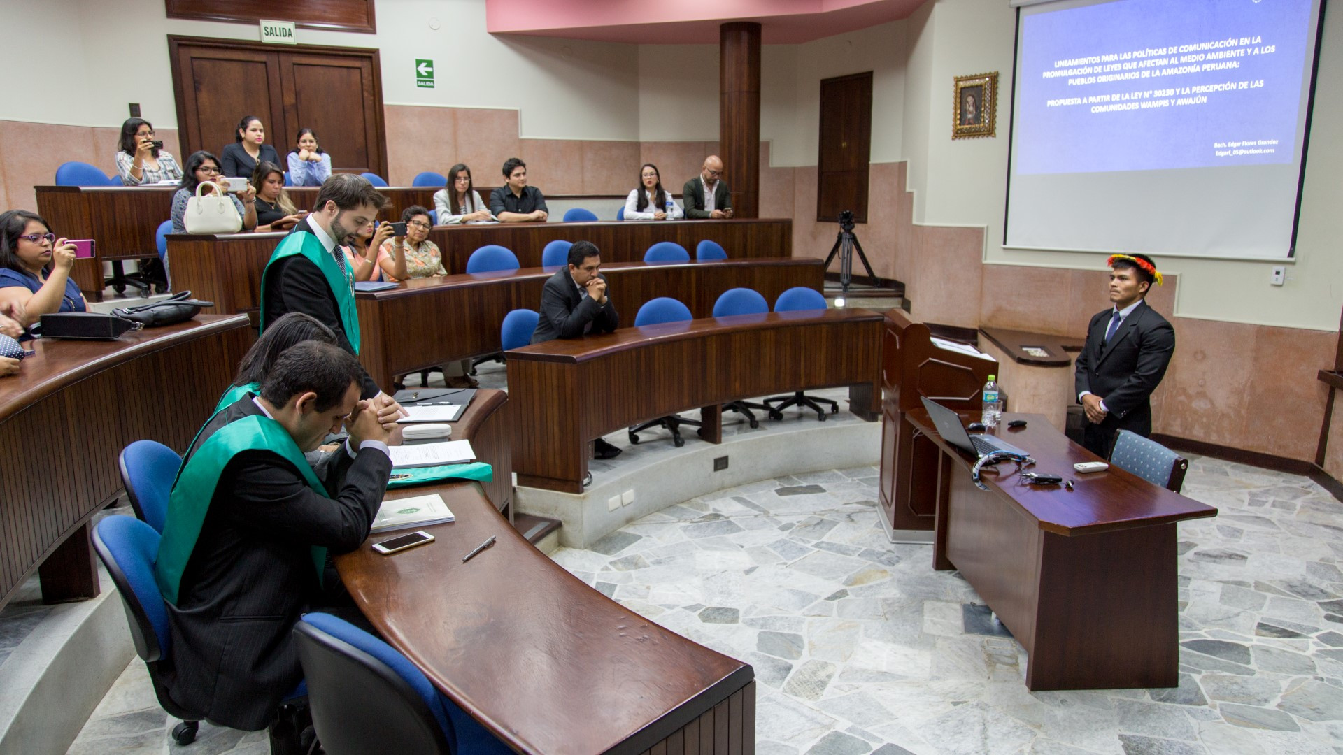 El estudio “Lineamientos para las políticas de comunicación en la promulgación de leyes que afectan al medio ambiente y a los pueblos originarios de la Amazonía peruana: propuesta a partir de la Ley 30230 y la percepción de la comunidades Wampis y Awajún” fue sustentado por Edgar para optar el título de licenciado en Comunicación.