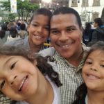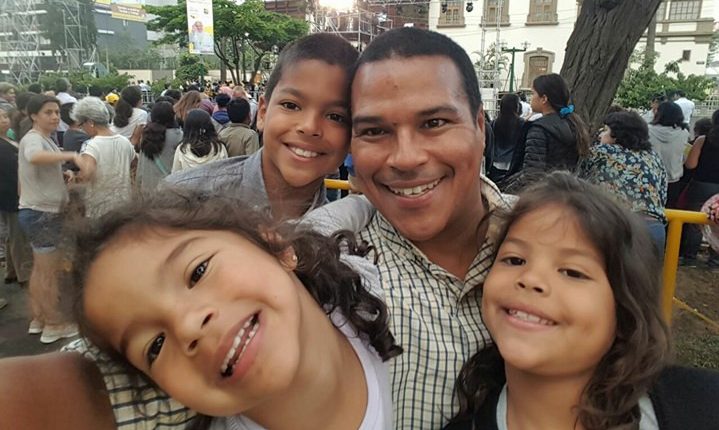 - Claudio Zegarra y sus hijos esperando al Papa afuera de la Nunciatura.