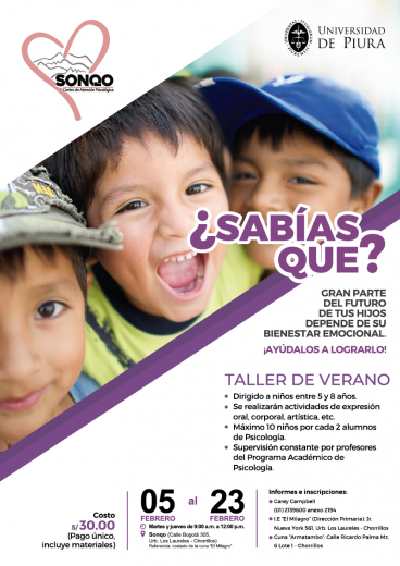En febrero, Sonqo dictará el taller de verano “Exprésate”, dirigido a niños entre 5 y 8 años de la comunidad de Chorrillos.