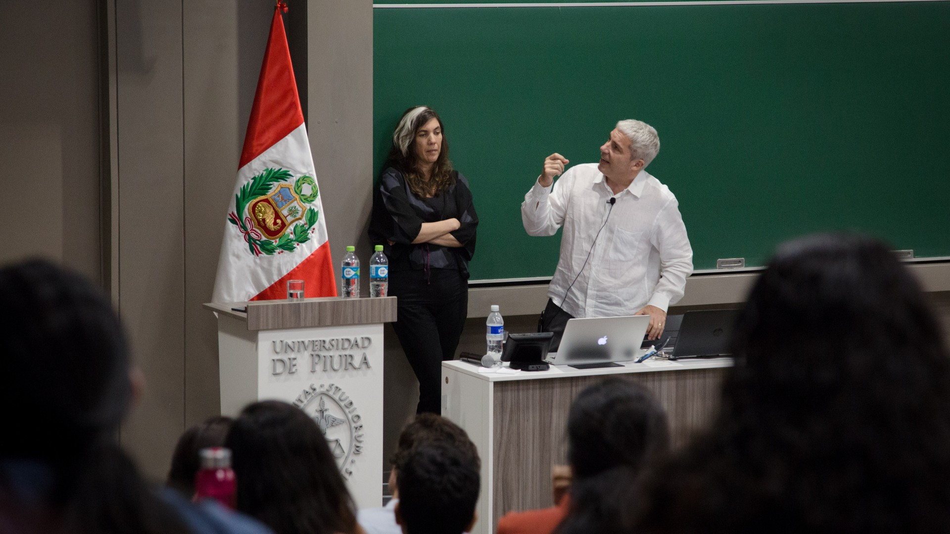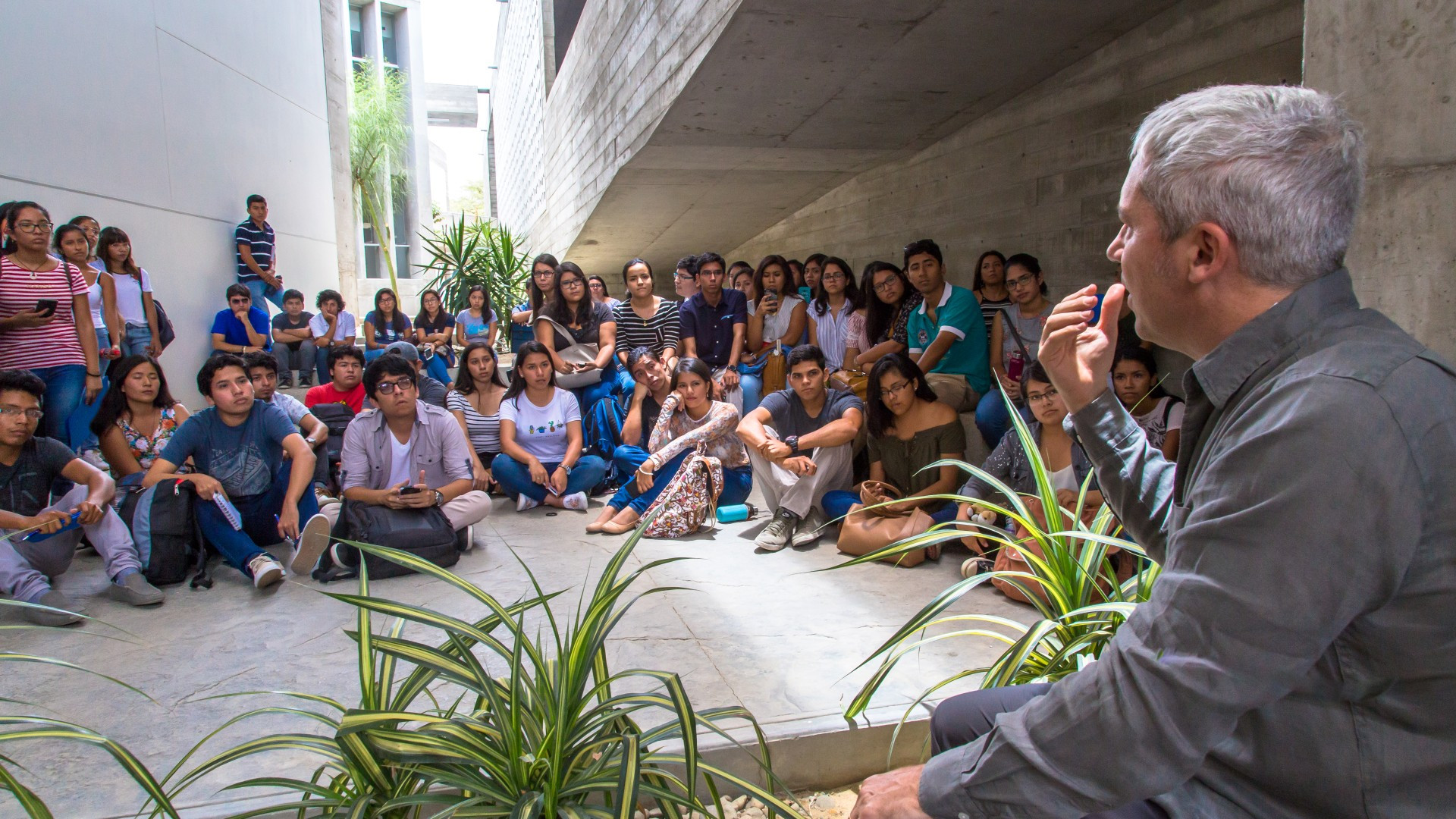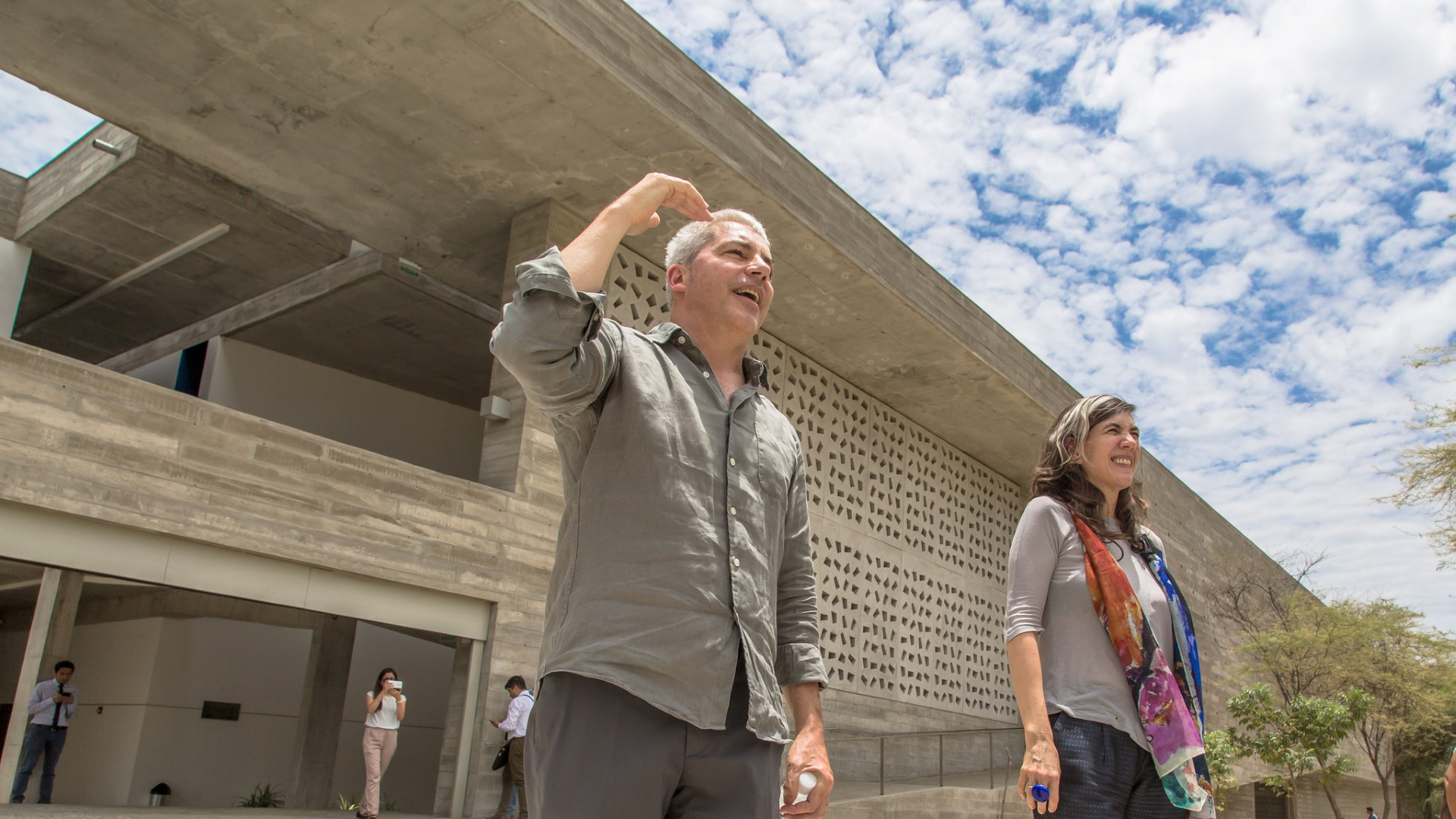 Los detalles que han convertido al Edificio E en una obra arquitectónica reconocida, a nivel internacional, fueron compartidos por Sandra Barclay y Jean Piere Crousse, en un diálogo con jóvenes piuranos, en el lugar.