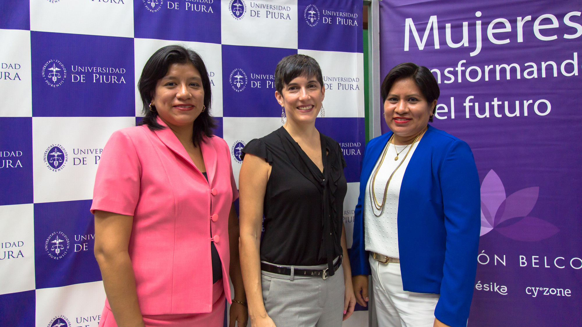 Fabiola Alcas (Docente UDEP), Verónica Melzi (Fundación Belcorp) y Brenda Silupú (directora del Centro de Asesoría Microempresarial).