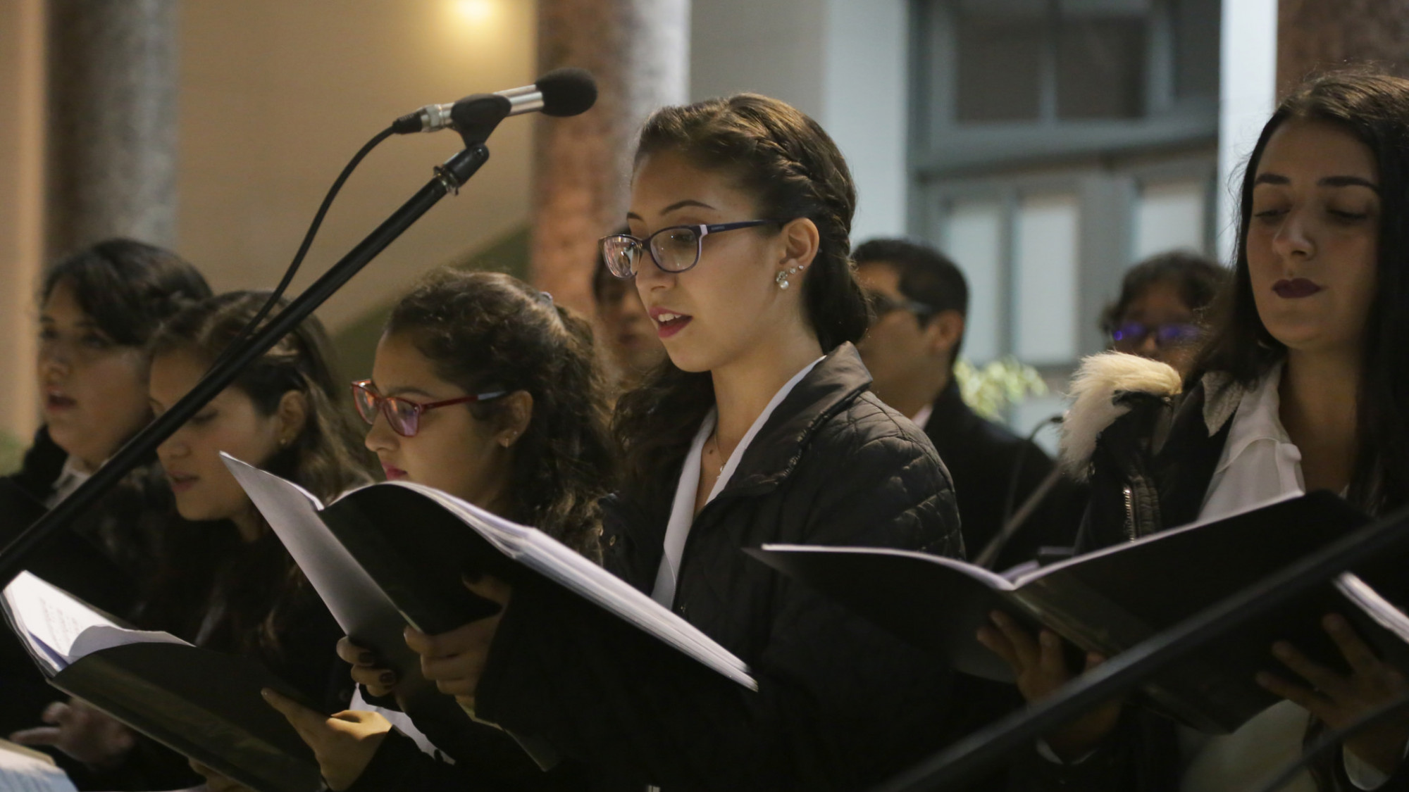 El Coro Universitario, dirigido por Astrid Aguilar, deleitó con la canción: “Muchas gracias, María” y “Happy together”.
