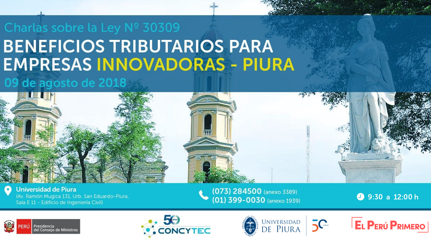 Informes: reynaldo.raygada@udep.pe / cluque@concytec.gob.pe Teléfonos: (073) 284500, anexo 3389 / 01 399 0030, anexo 1939. Inscripciones: aquí.