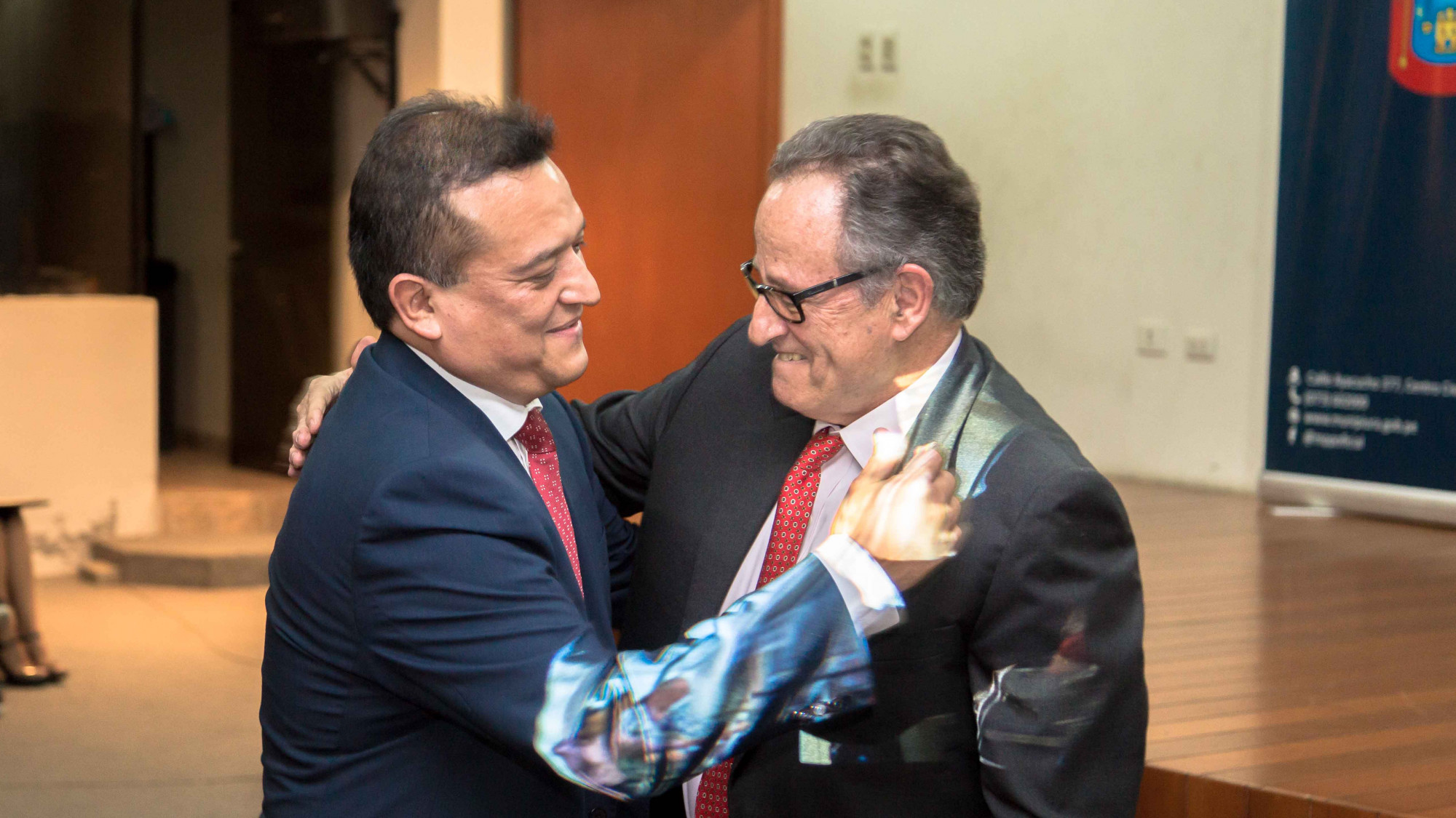 El alcalde de Piura, Oscar Miranda, entrega la Medalla de Oro de la Ciudad, al doctor Martín Sarango, declarándolo Hijo Predilecto de Piura.