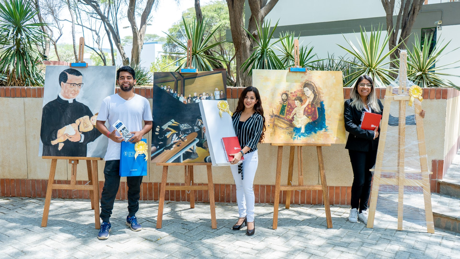 La muestra de arte también exhibió los cuadros pertenecientes a los tres primeros puestos del concurso de pintura “San Josemaría Escrivá”. Estas piezas laureadas expresaron la vida y obra del Fundador de la Universidad de Piura.