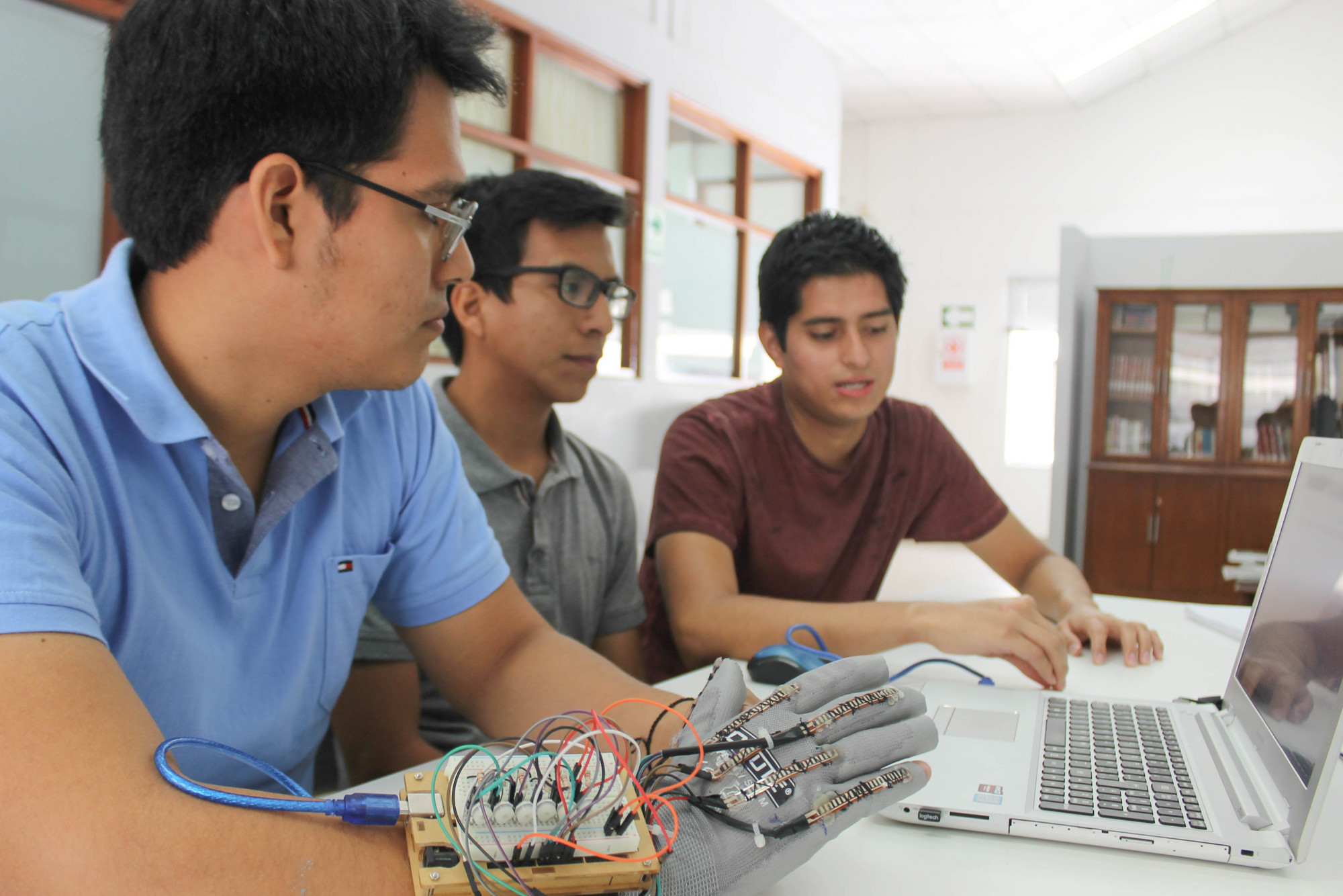Otro grupo desarrolló un sistema de interpretación de lenguaje de señas peruanas conectado a un guante. “Queremos que este sea capaz de ayudar a las personas a comunicarse mejor, convirtiendo en audible el lenguaje de señas. En el país existe un déficit de intérpretes certificados de este lenguaje y en nuestro mercado no hay un prototipo igual a este”, sostuvo Alonso Salazar Cubas.